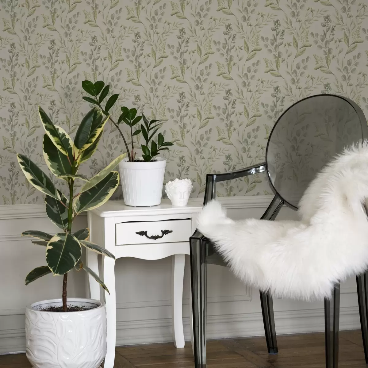 Tapet Blekgrønn eukalyptus i akvarell grønn eukalyptus i akvarell med botanisk mønster Nr. a00449