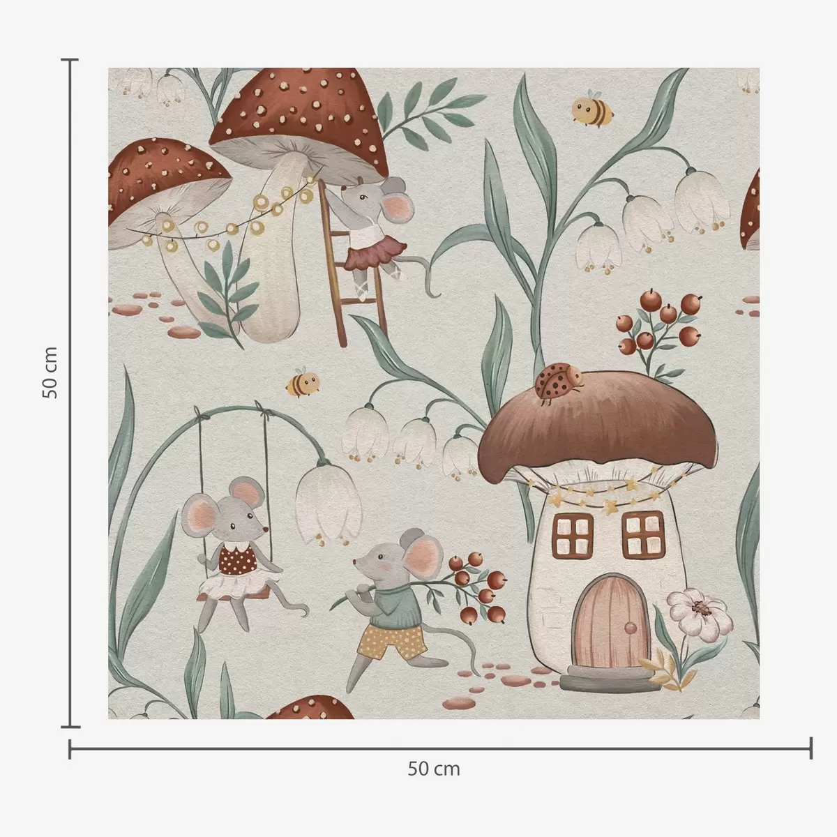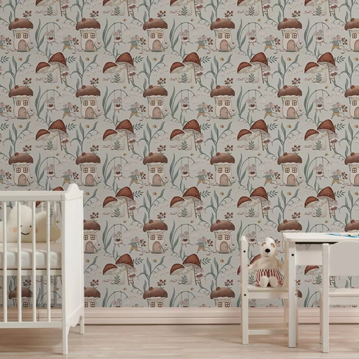 Tapet Søte mus og sopp på bakgrunn av et fint skoglandskap Nr. a00450