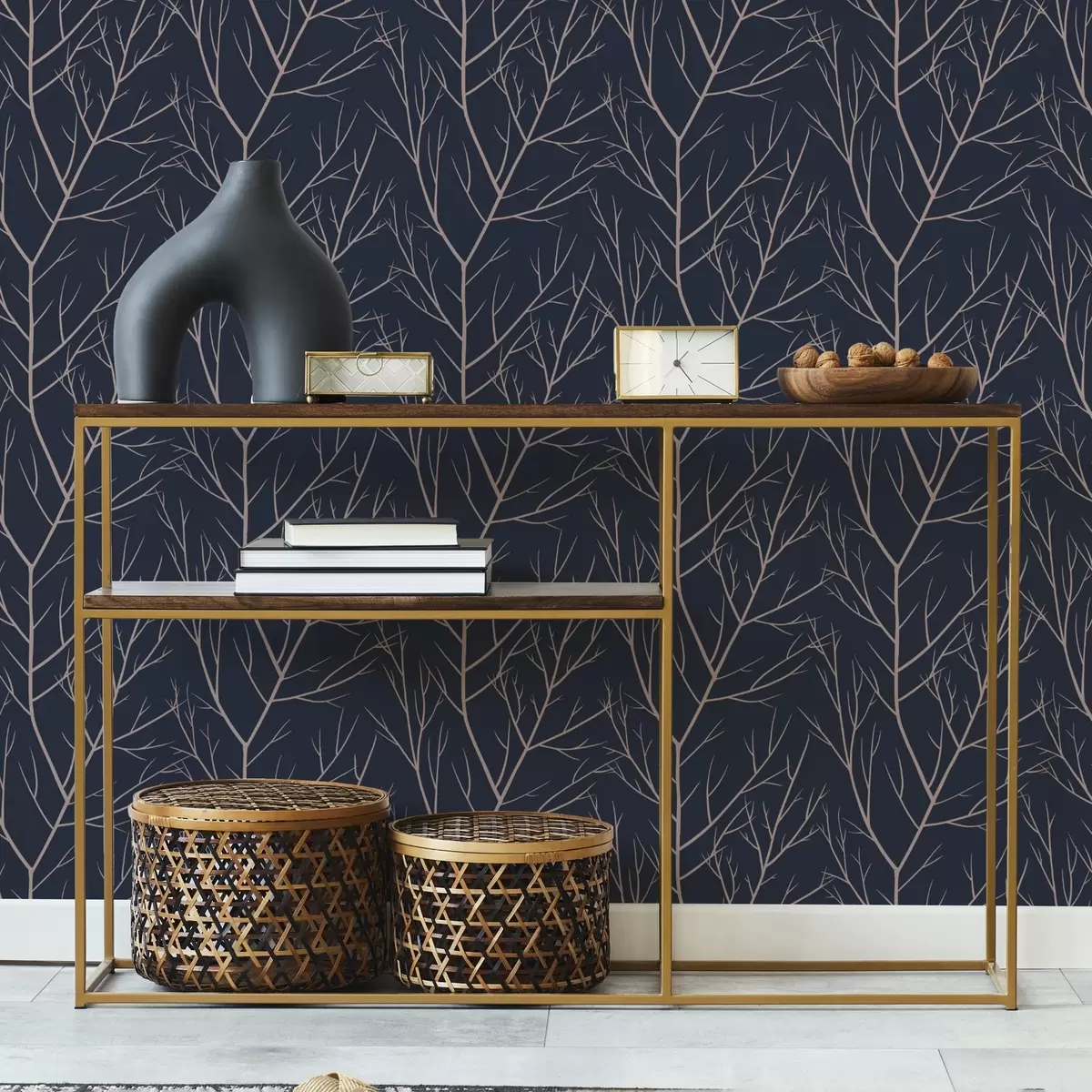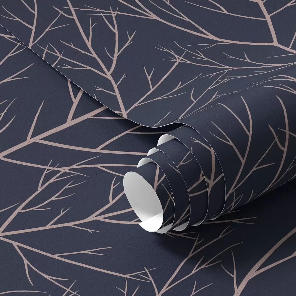 Tapet Myke røde grener på en dyp marineblå bakgrunn Nr. a00451