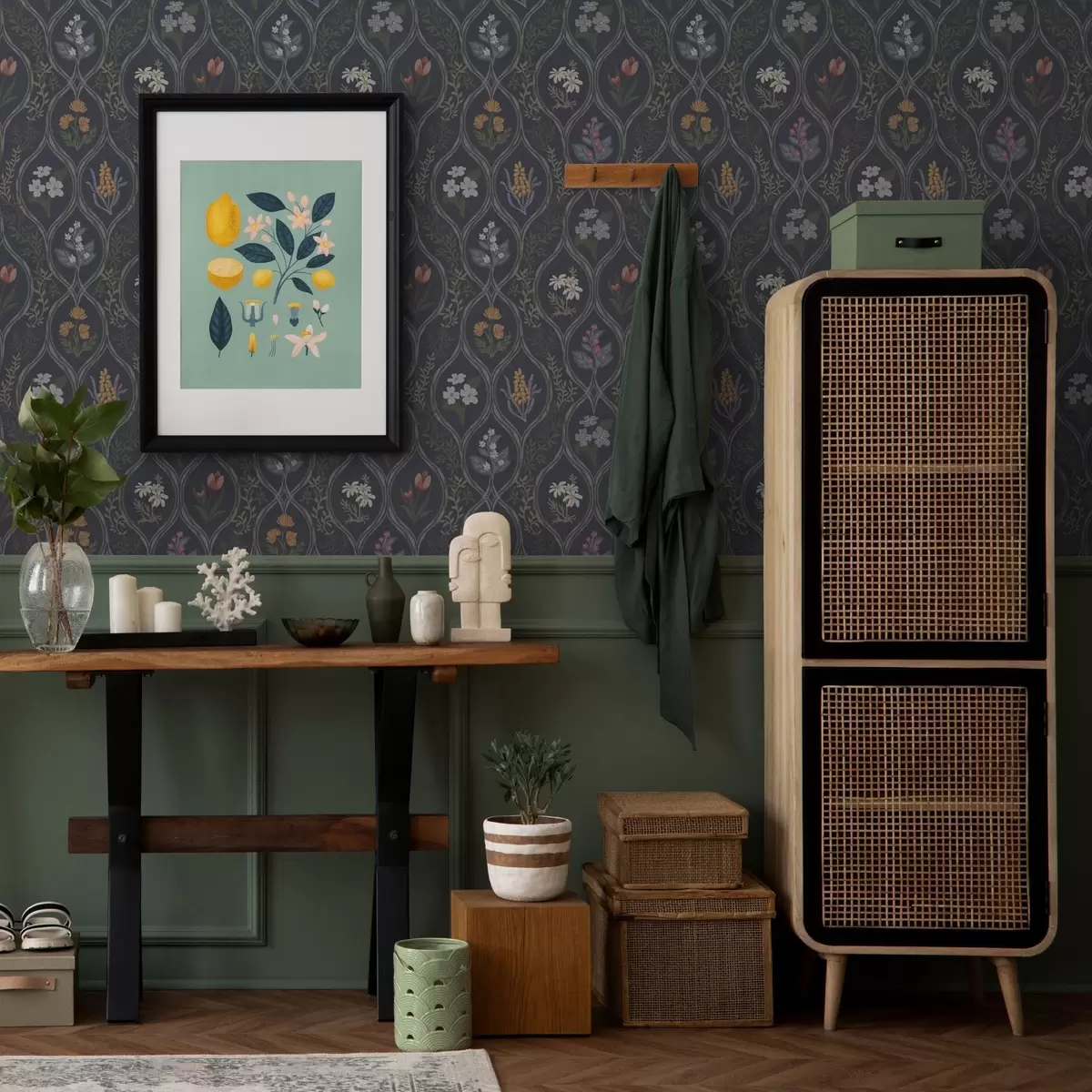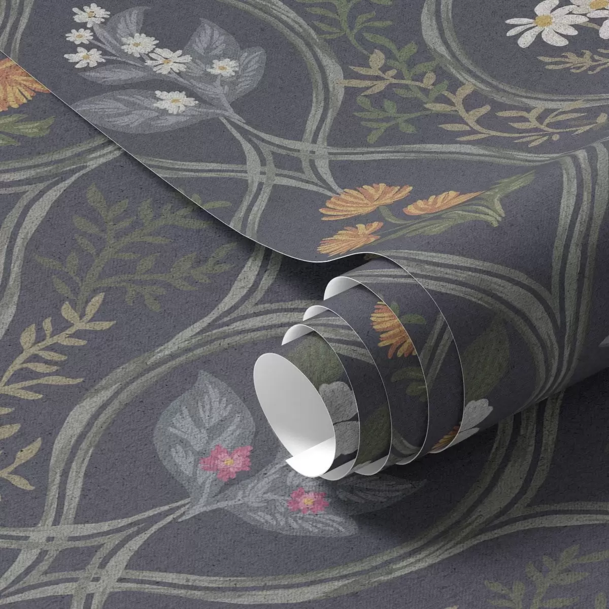 Tapet Mørk vintage-ramme med fargerike hageblomster Nr. a00454