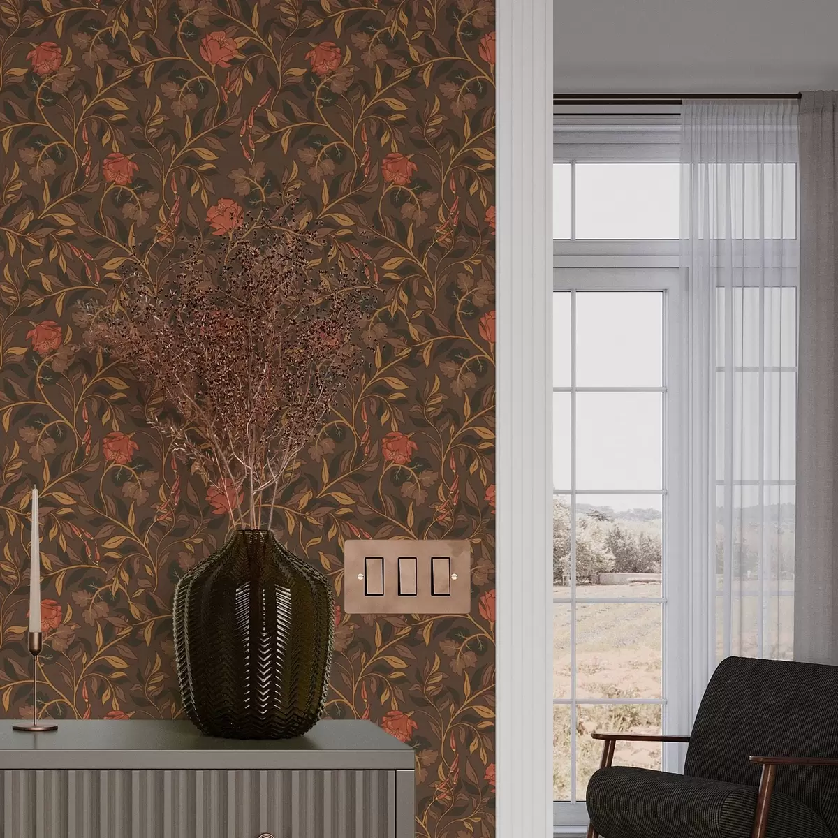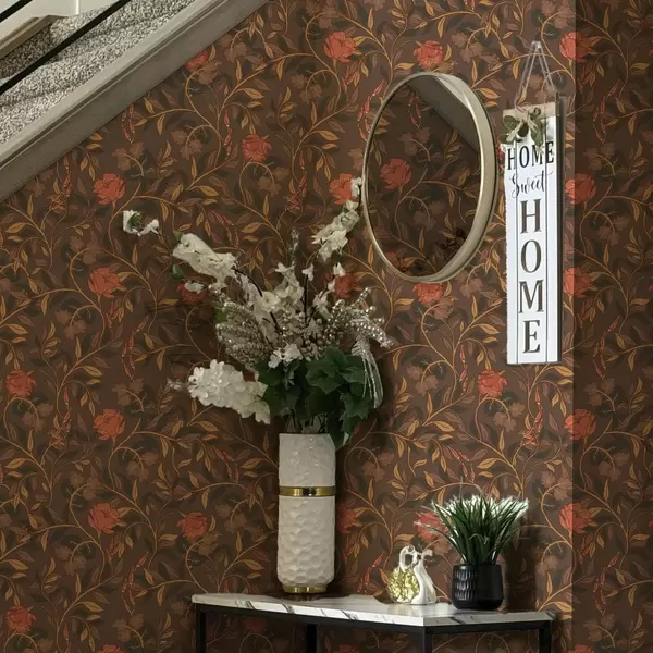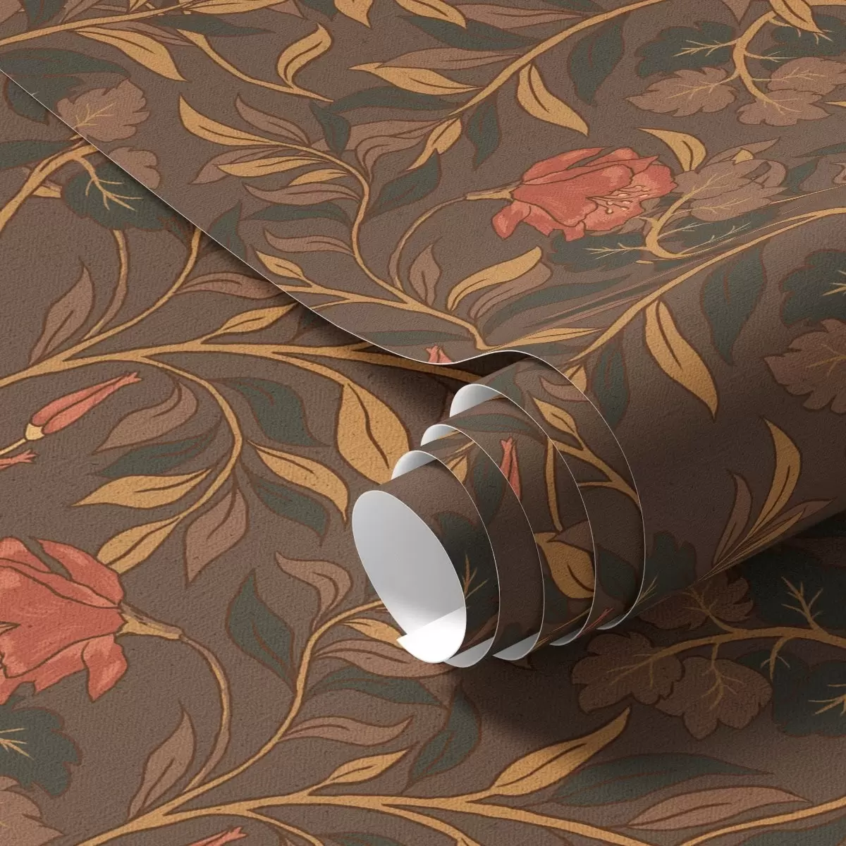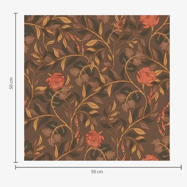 Tapet Blomstrende terrakottagrener på brun bakgrunn Nr. a00460