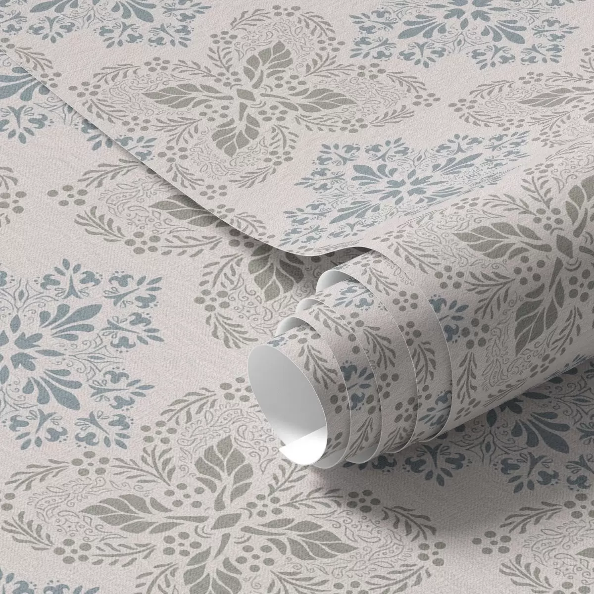 Tapet Symmetriske gråblå bladmønstre Nr. a00467