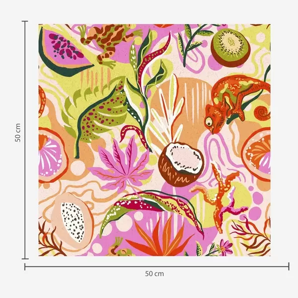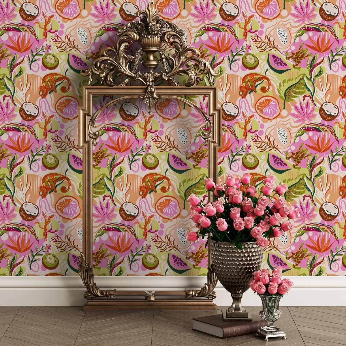 Tapet Eksotiske frukter, blader og kameleoner i tropisk stil Nr. a00469