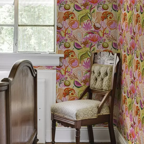 Tapet Eksotiske frukter, blader og kameleoner i tropisk stil Nr. a00469