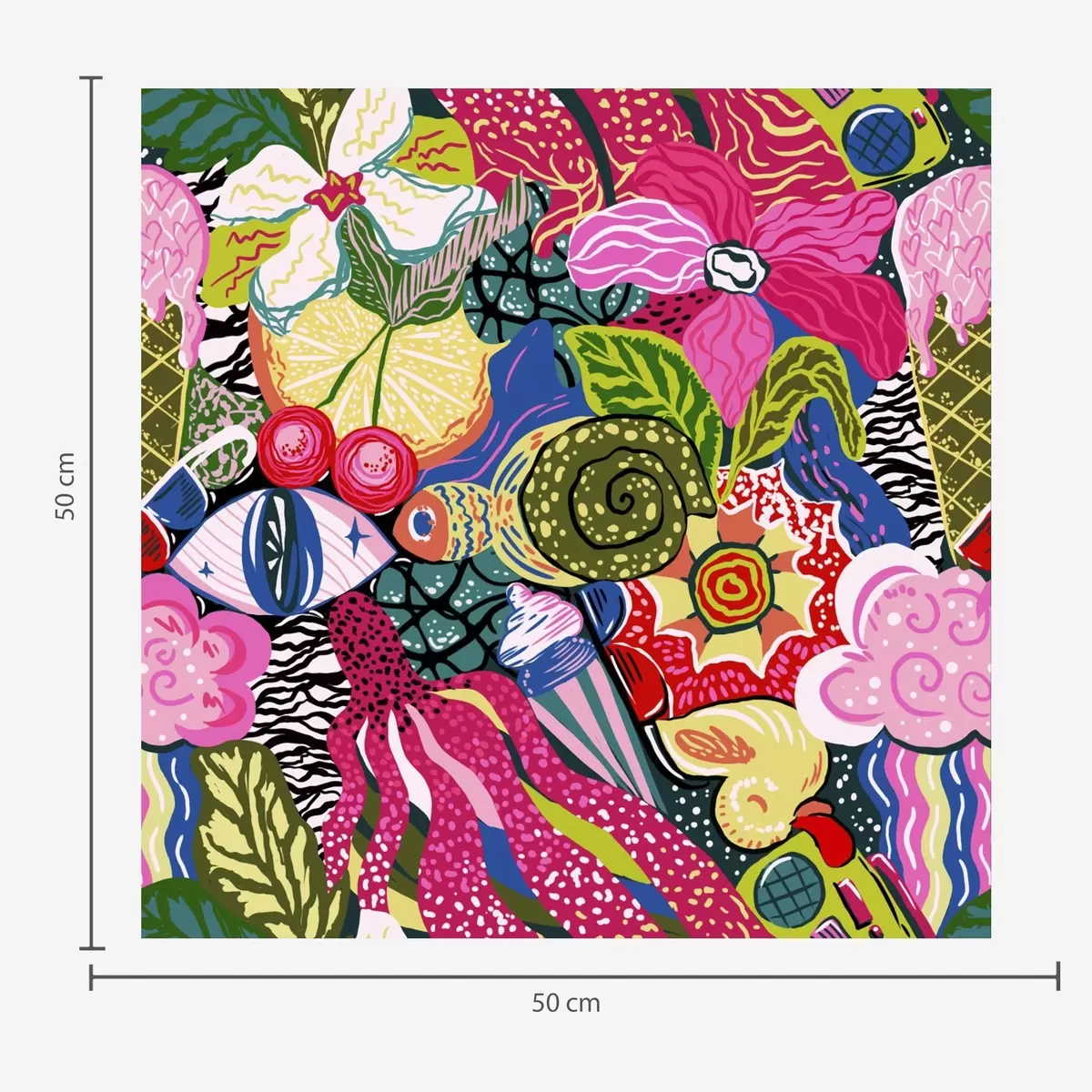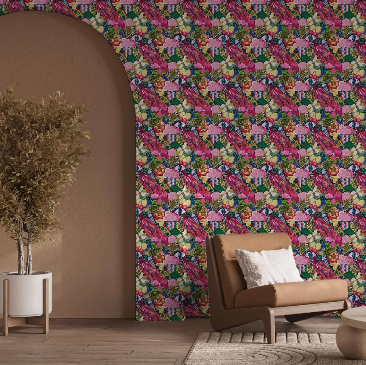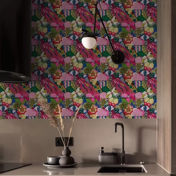Tapet Abstrakt pop-art med blomster, bær og mønstre Nr. a00471