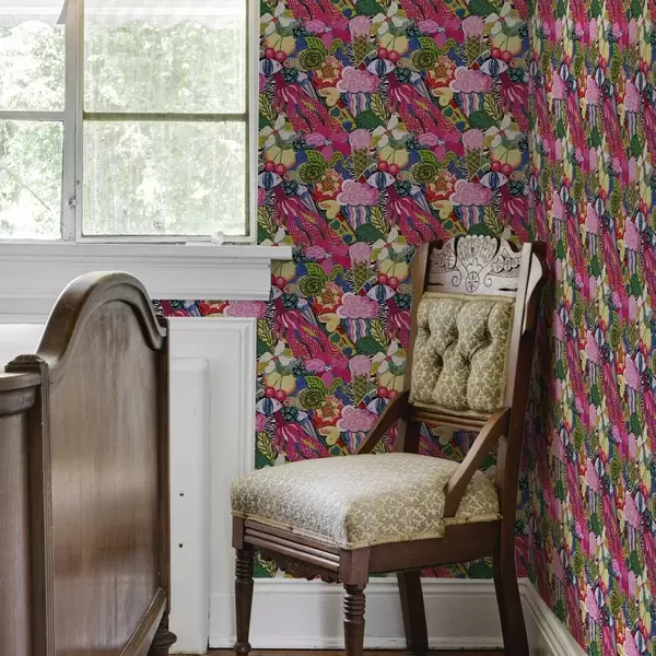 Tapet Abstrakt pop-art med blomster, bær og mønstre Nr. a00471