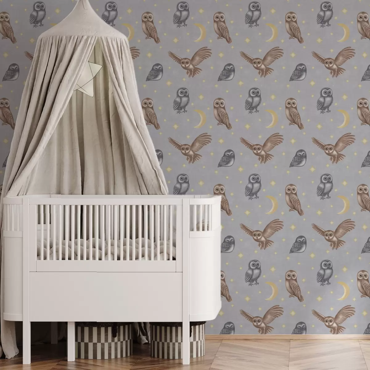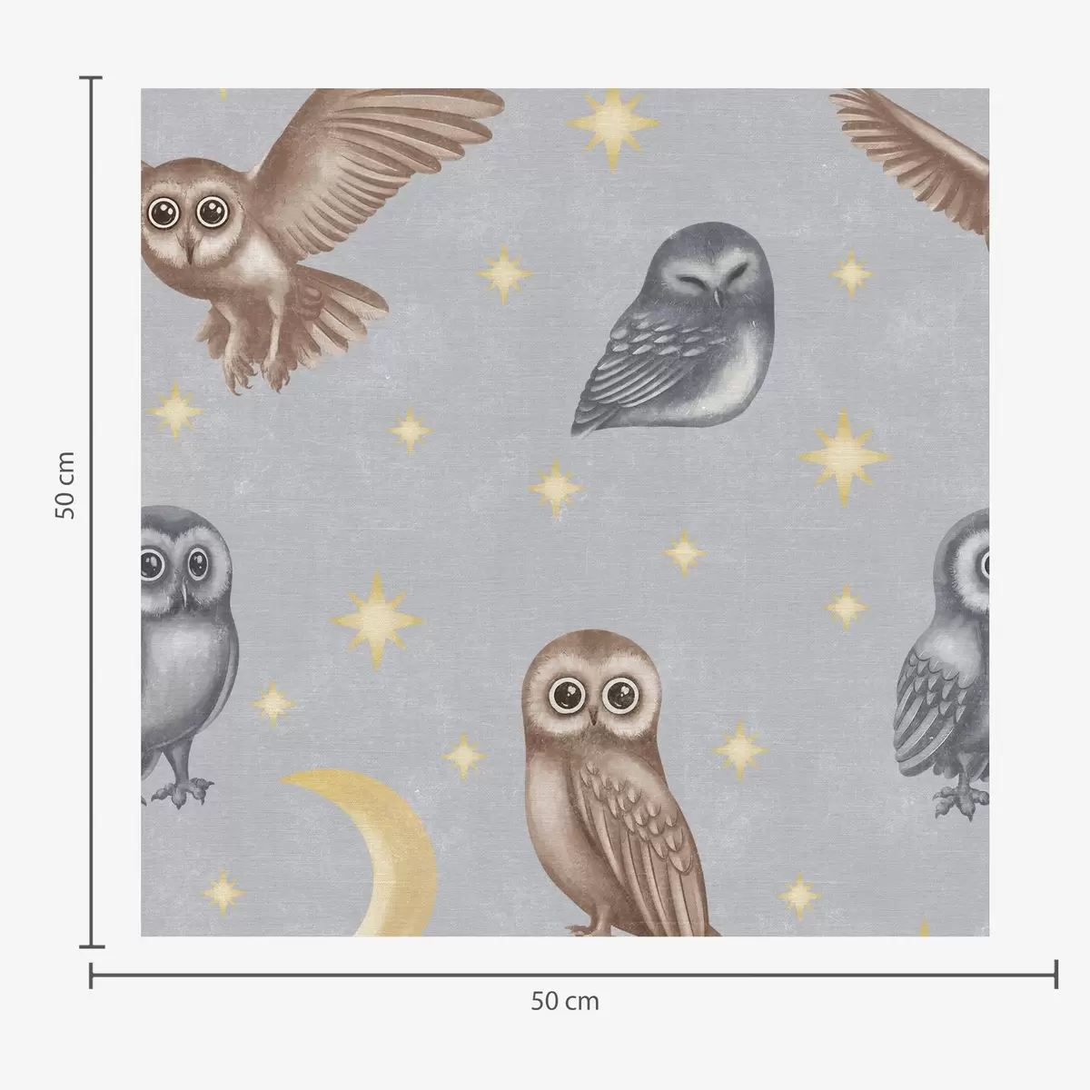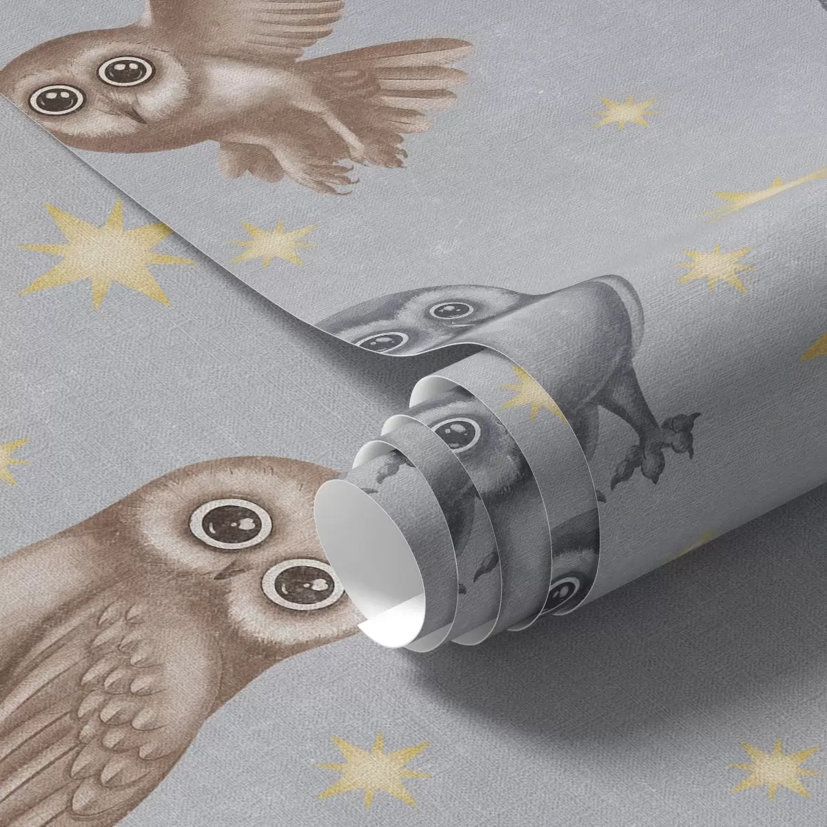Tapet Ugler og stjerner på en grå nattehimmelbakgrunn Nr. a00475