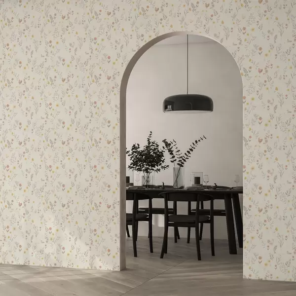 Tapet Åkerblomster og høns i duse pastellfarger Nr. a00478