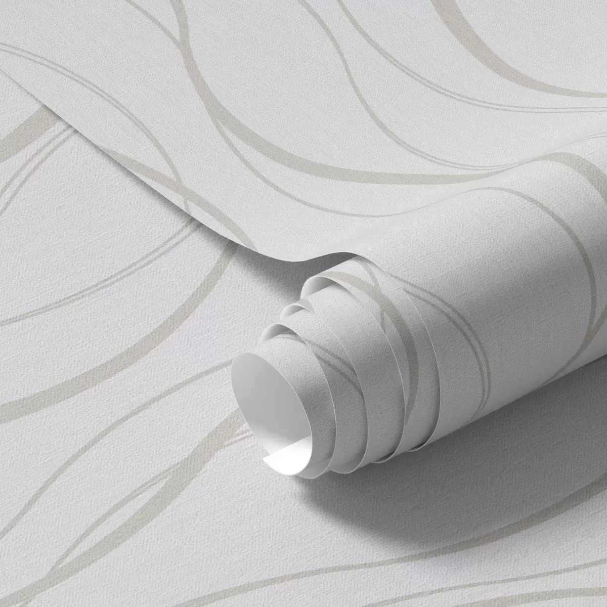 Tapet Abstrakte bølgete beige linjer på hvit bakgrunn Nr. a00480
