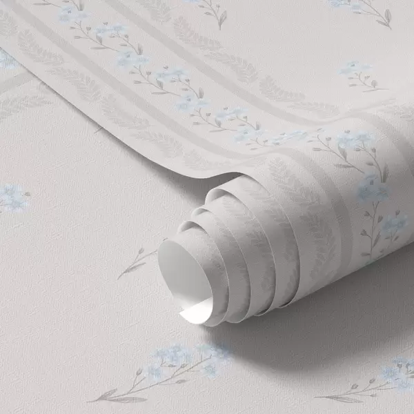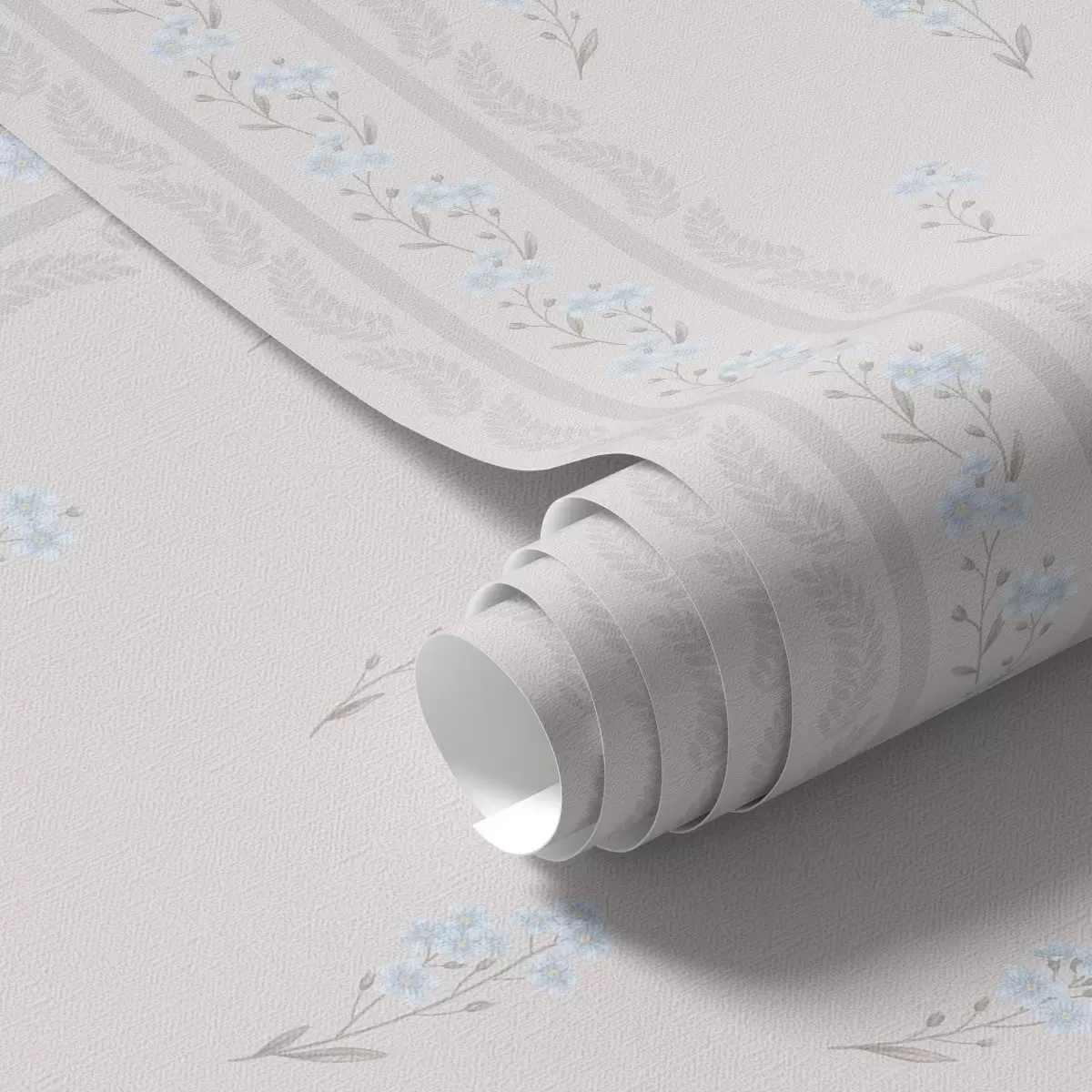 Tapet Rosa bakgrunn med delikate blå blomster og kant Nr. a00484