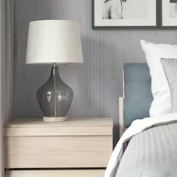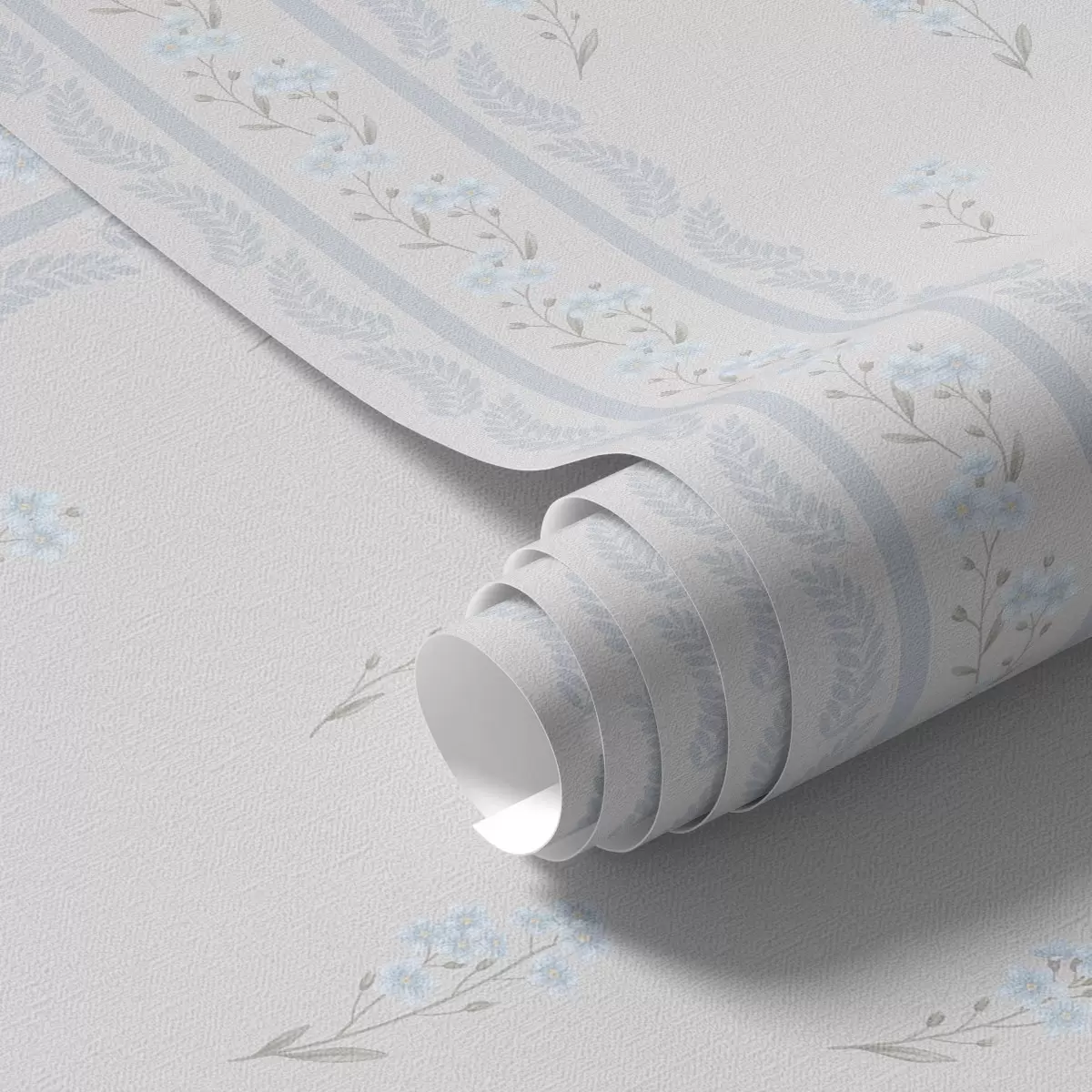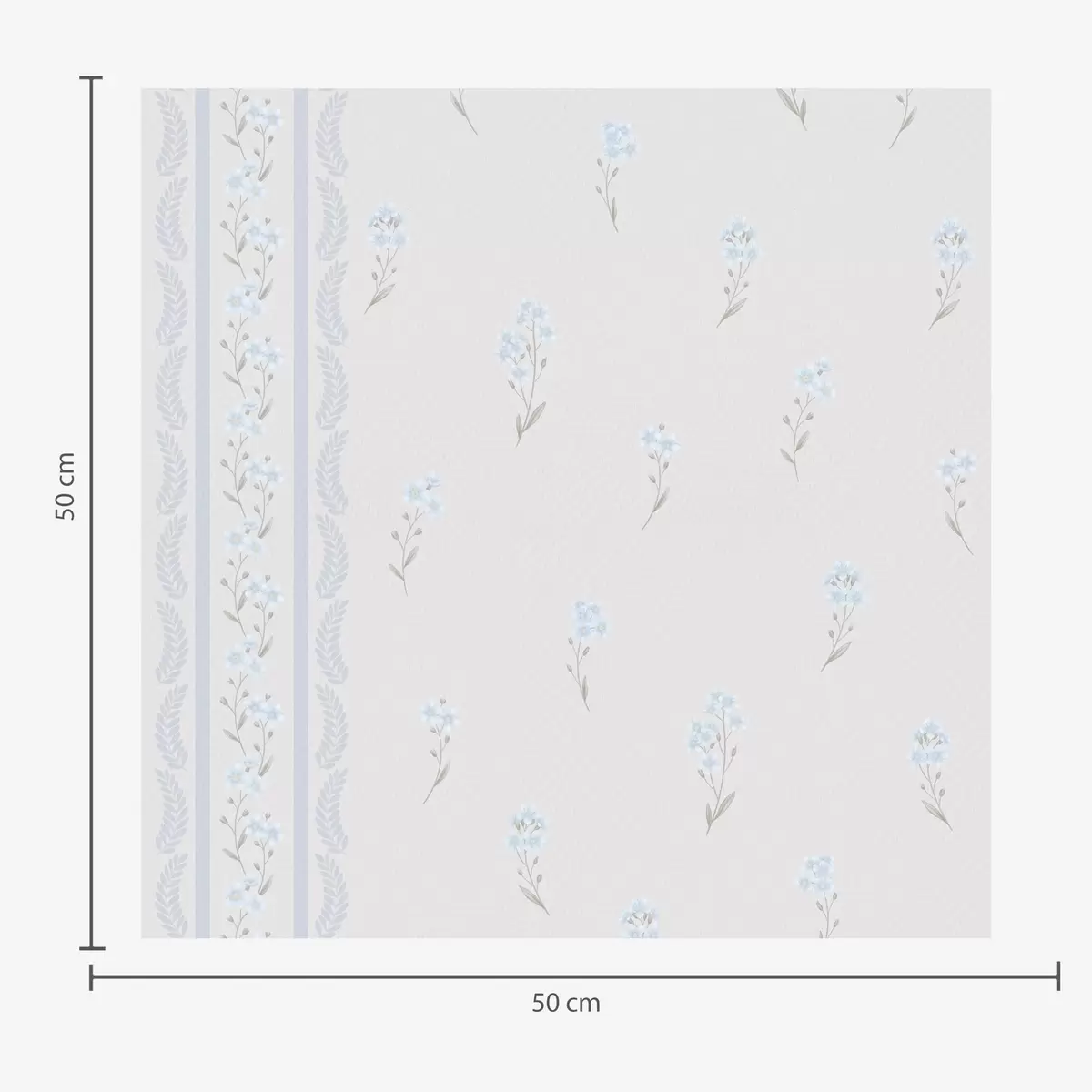 Tapet Hvit bakgrunn med blå blomster og dekorative striper Nr. a00484v1