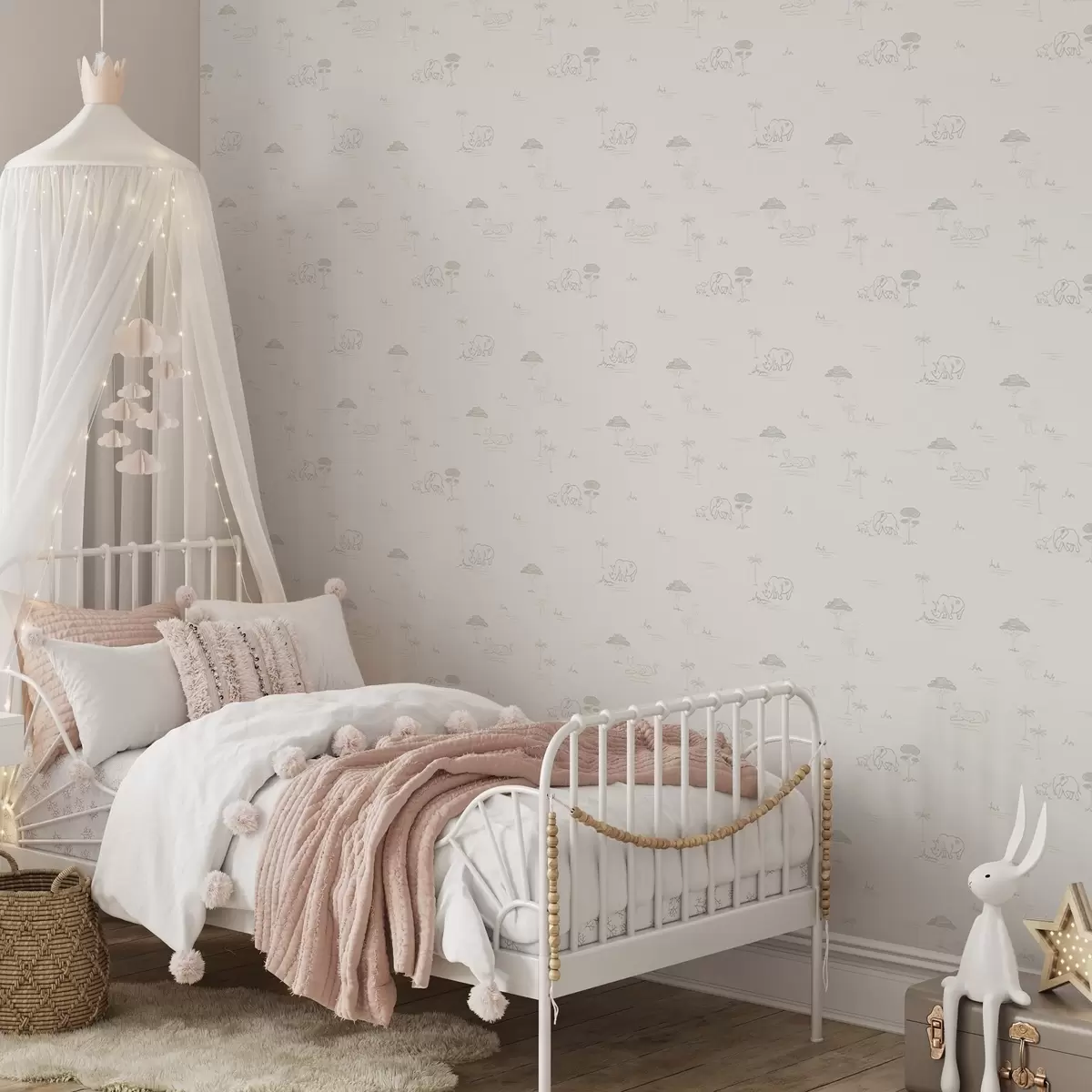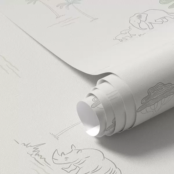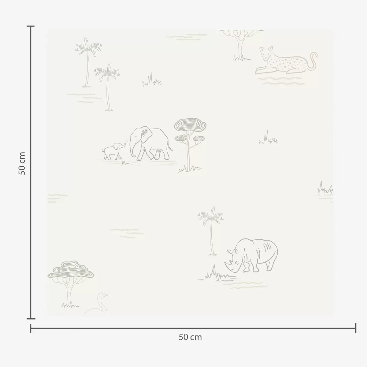 Tapet Minimalistisk safari: elefanter, neshorn, leoparder og palmer Nr. a00492