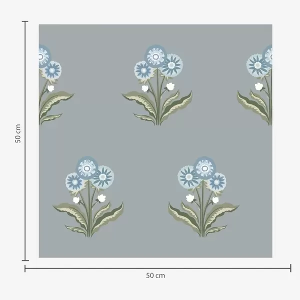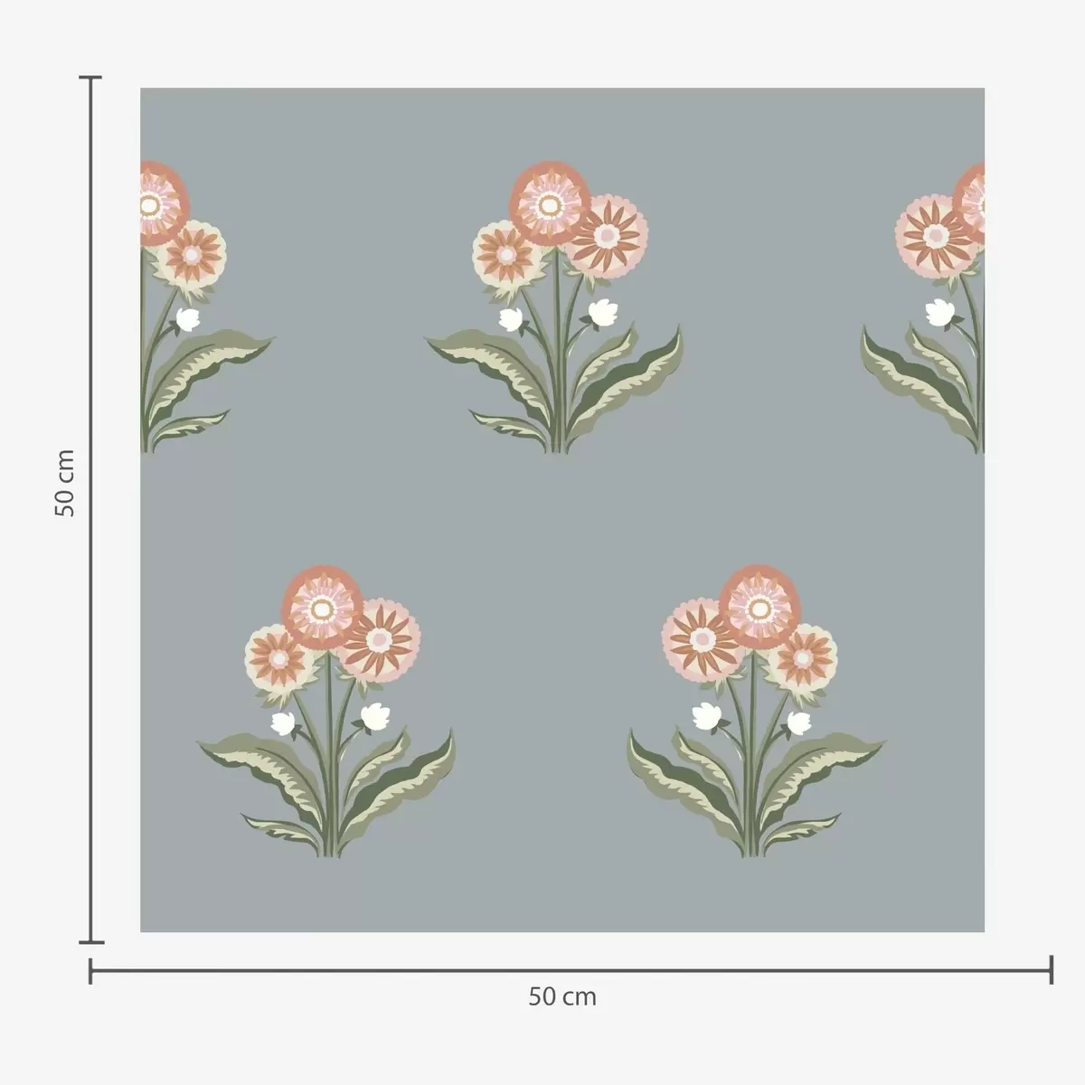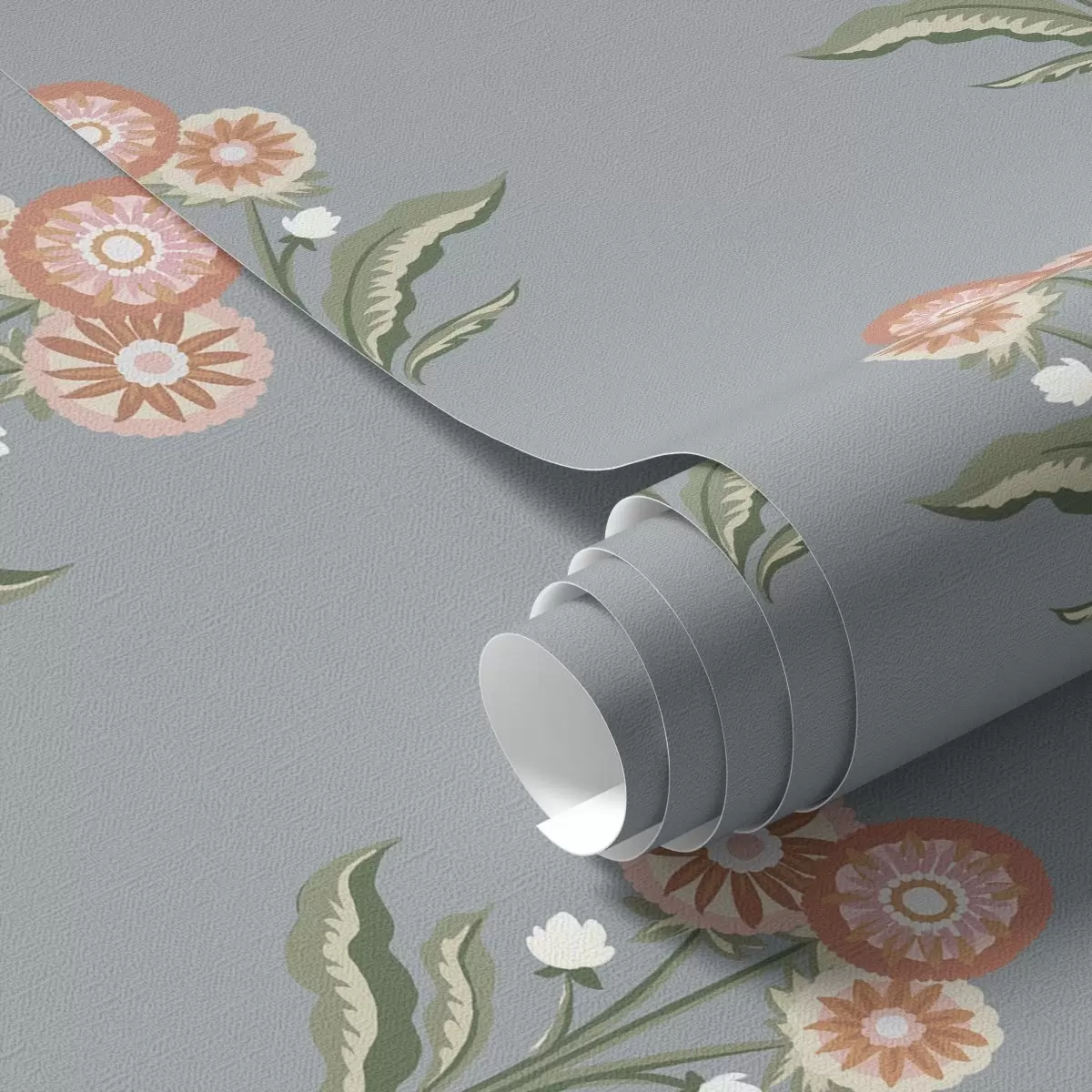 Tapet Stiliserte blomster på gråblå bakgrunn, varm fargepalett Nr. a00494