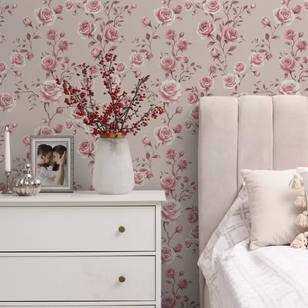 Tapet Pulveraktige roser på beige — vintage mønster Nr. a00497