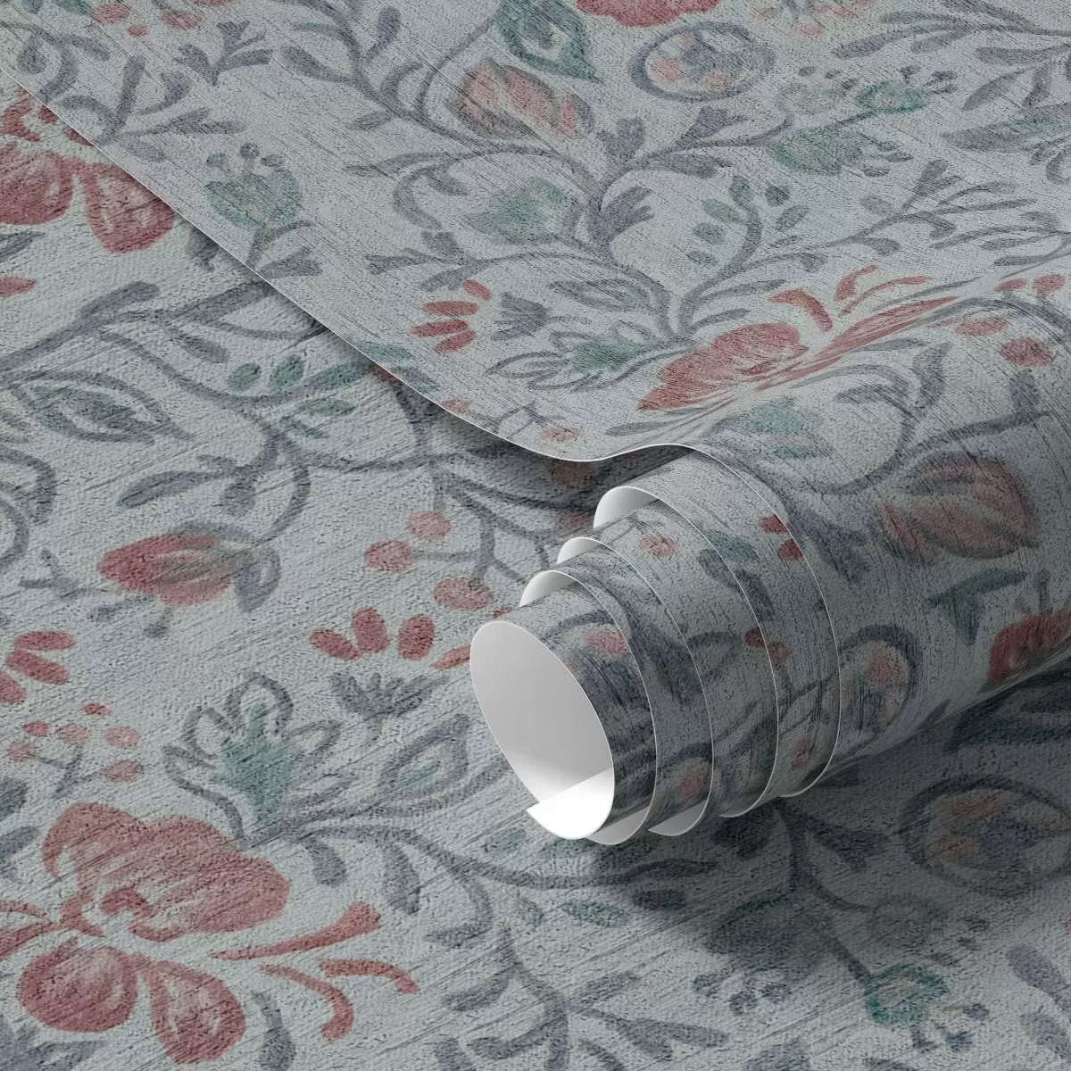 Tapet Pastellblomster på gråblå bakgrunn Nr. a00499