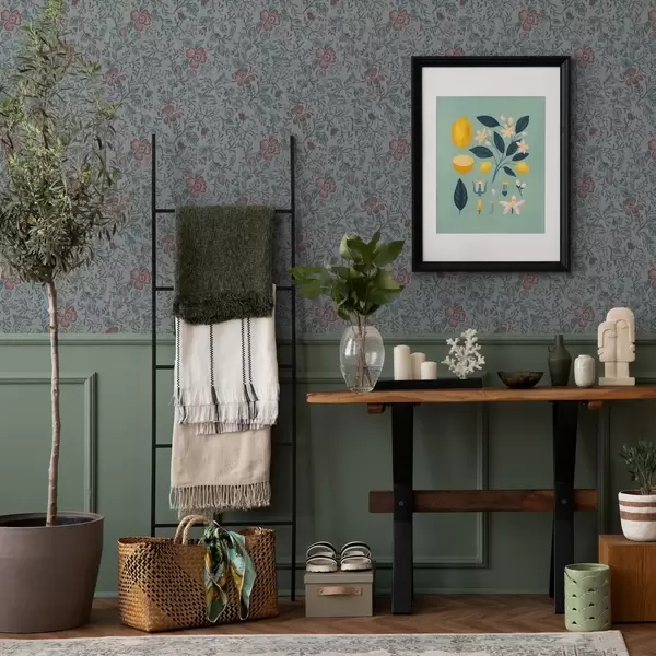 Tapet Pastellblomster på gråblå bakgrunn Nr. a00499