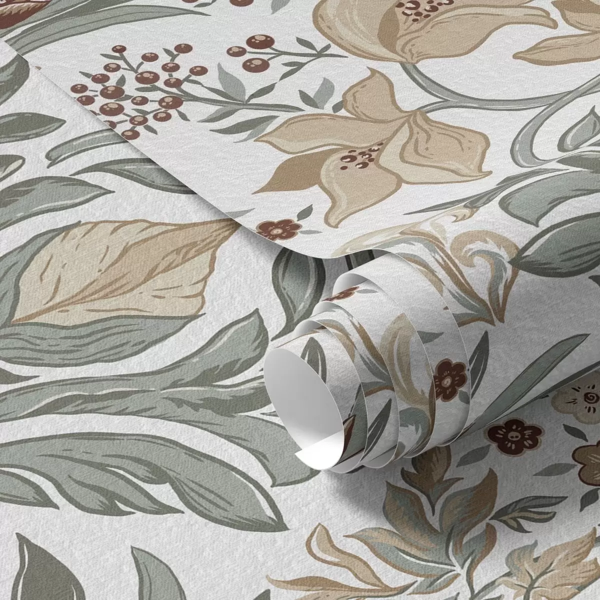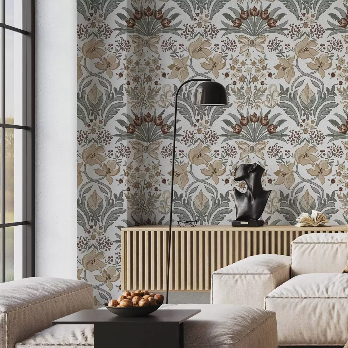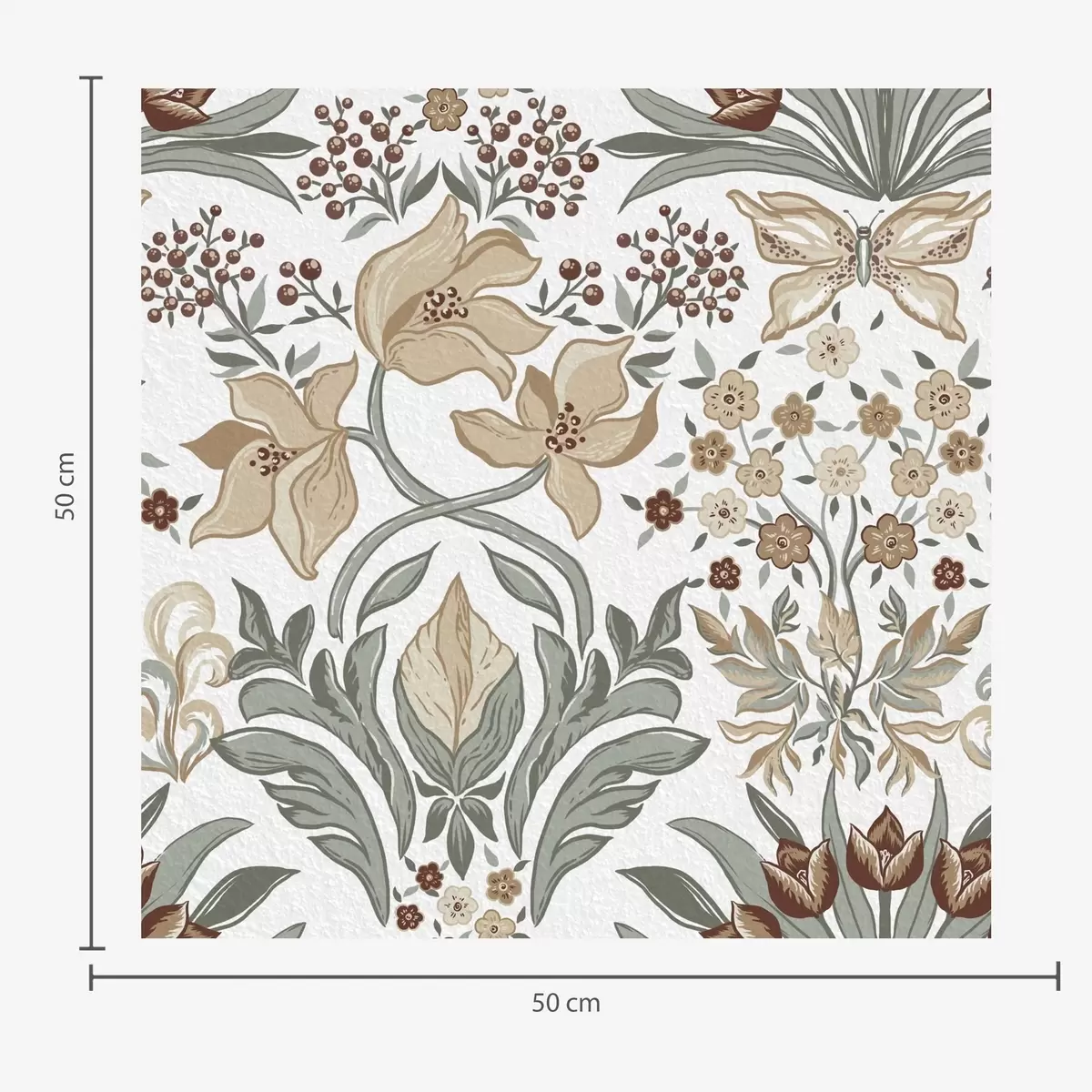 Tapet Dekorative liljer og en sommerfugl på hvit bakgrunn Nr. a00500v1