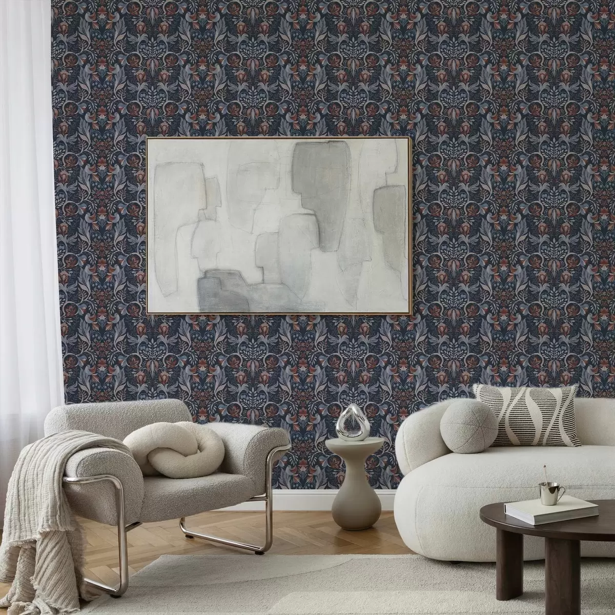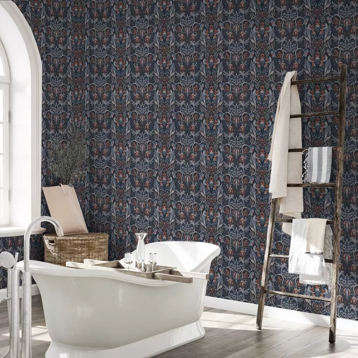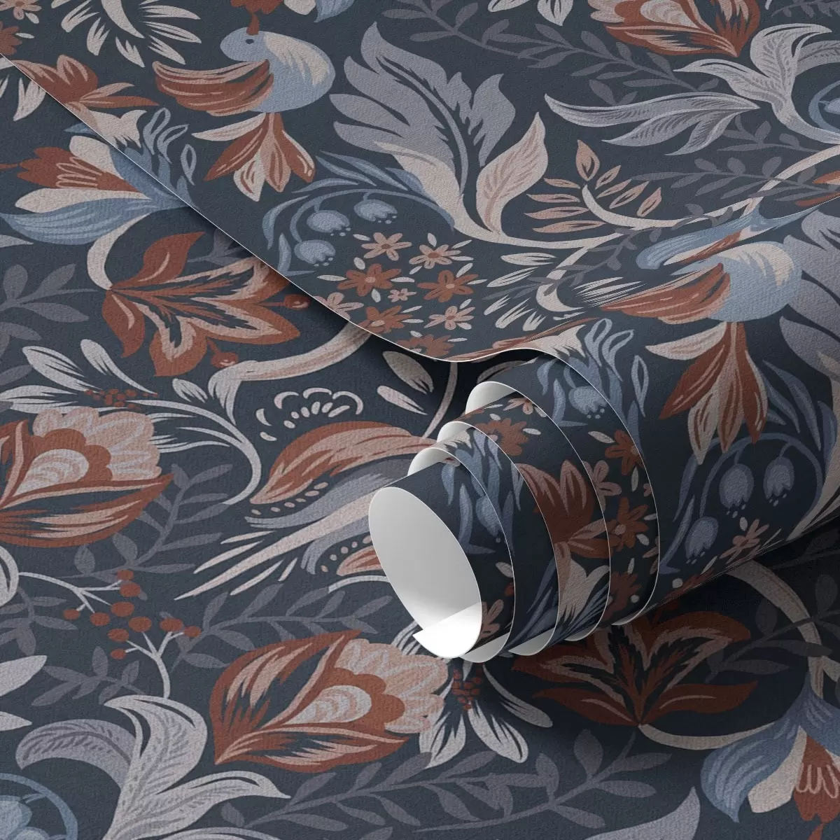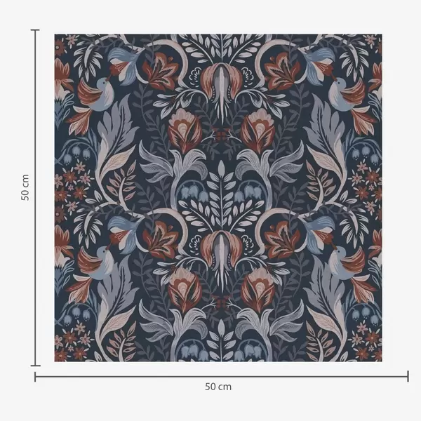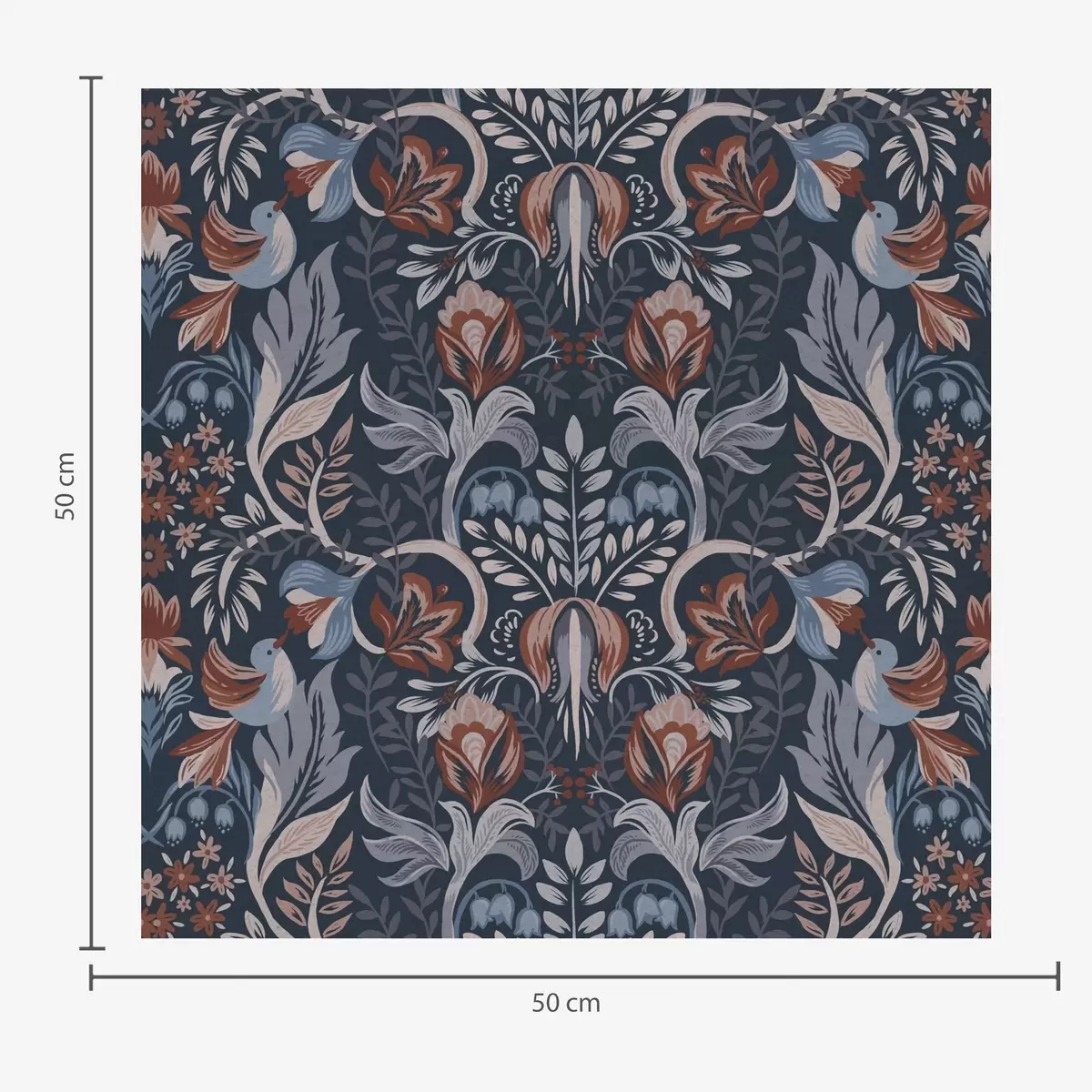 Tapet Folkemotiv med fugler, dyp indigo Nr. a00502v1