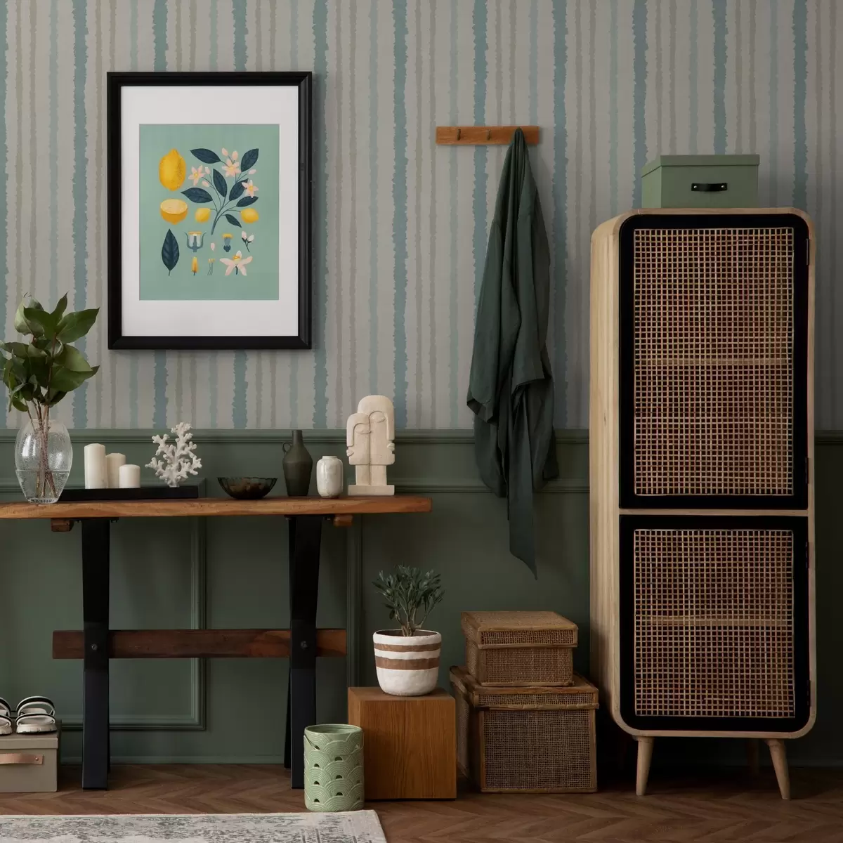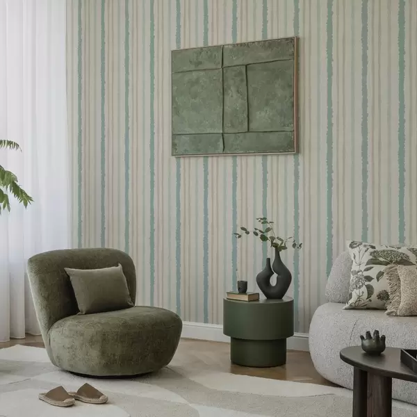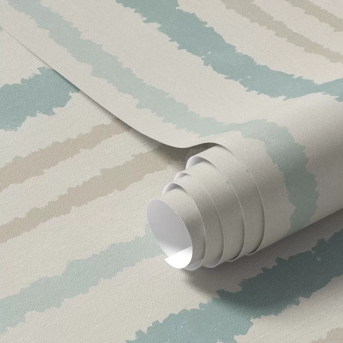 Tapet Turkis-beige striper med håndmalt effekt Nr. a00510v1