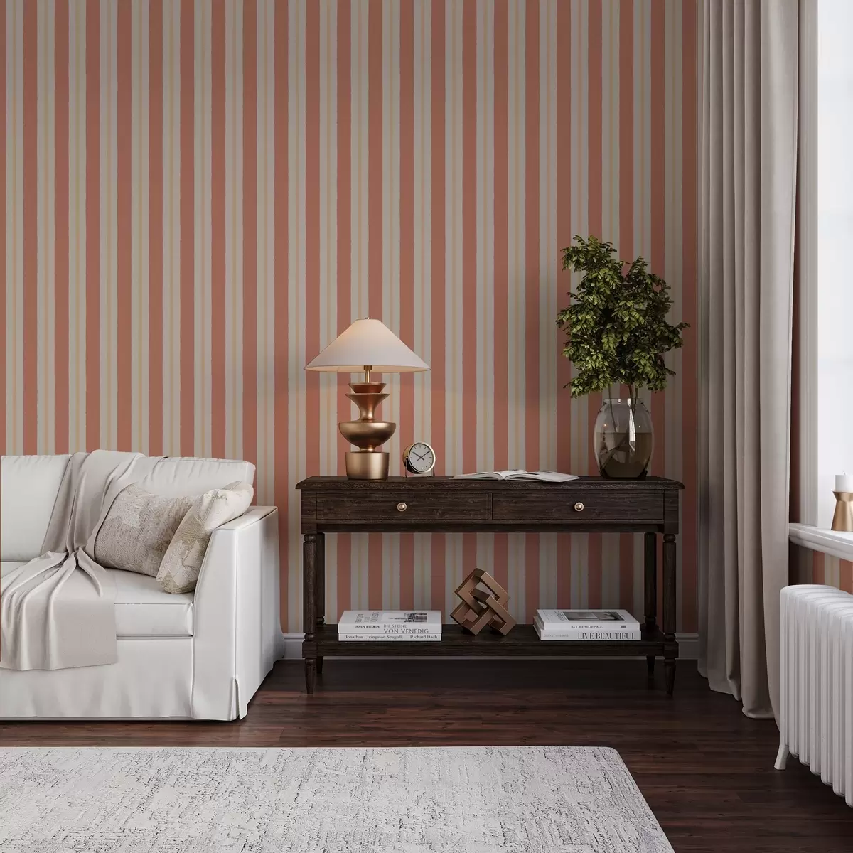 Tapet Lyse terrakottastriper med beige aksenter Nr. a00515