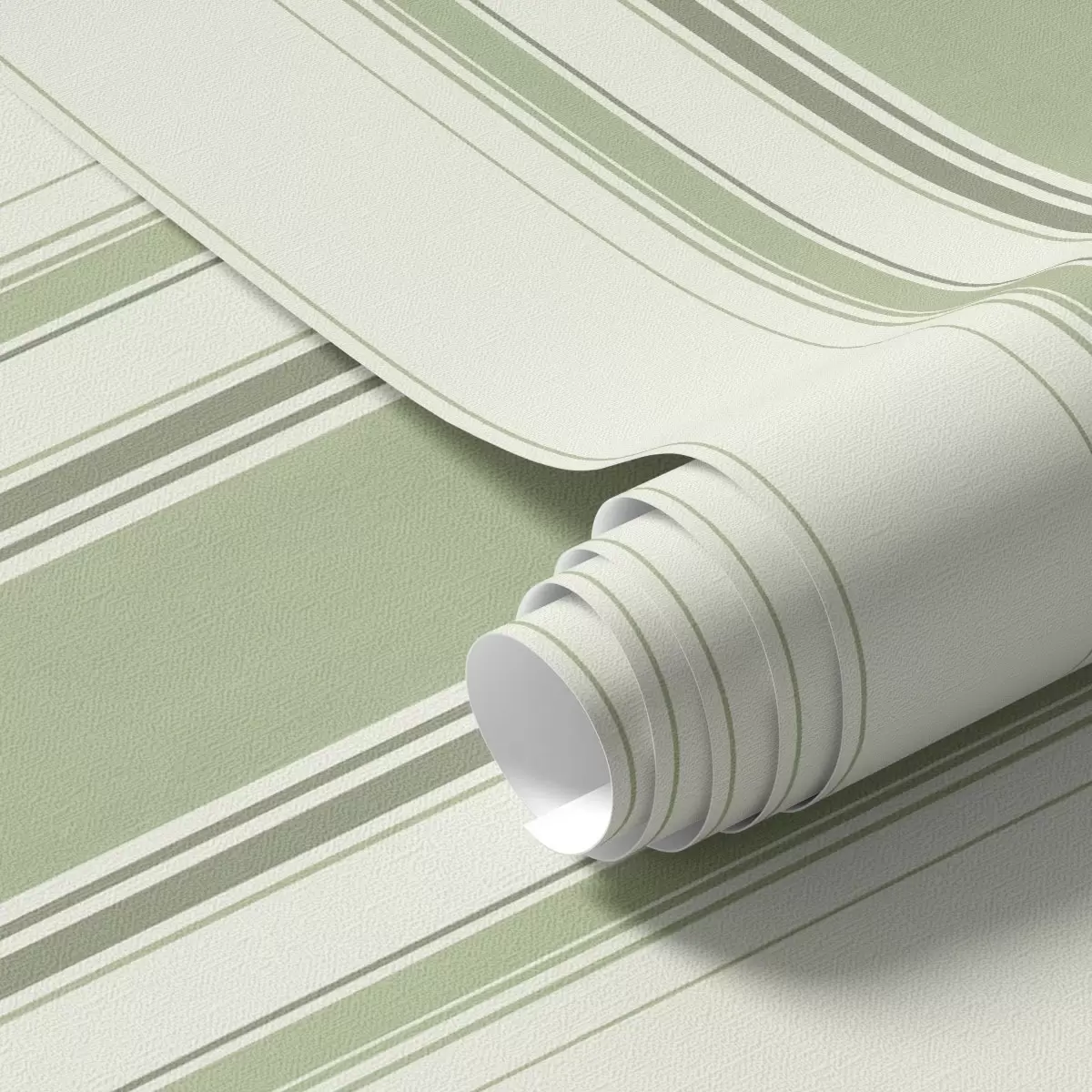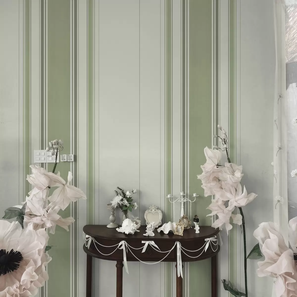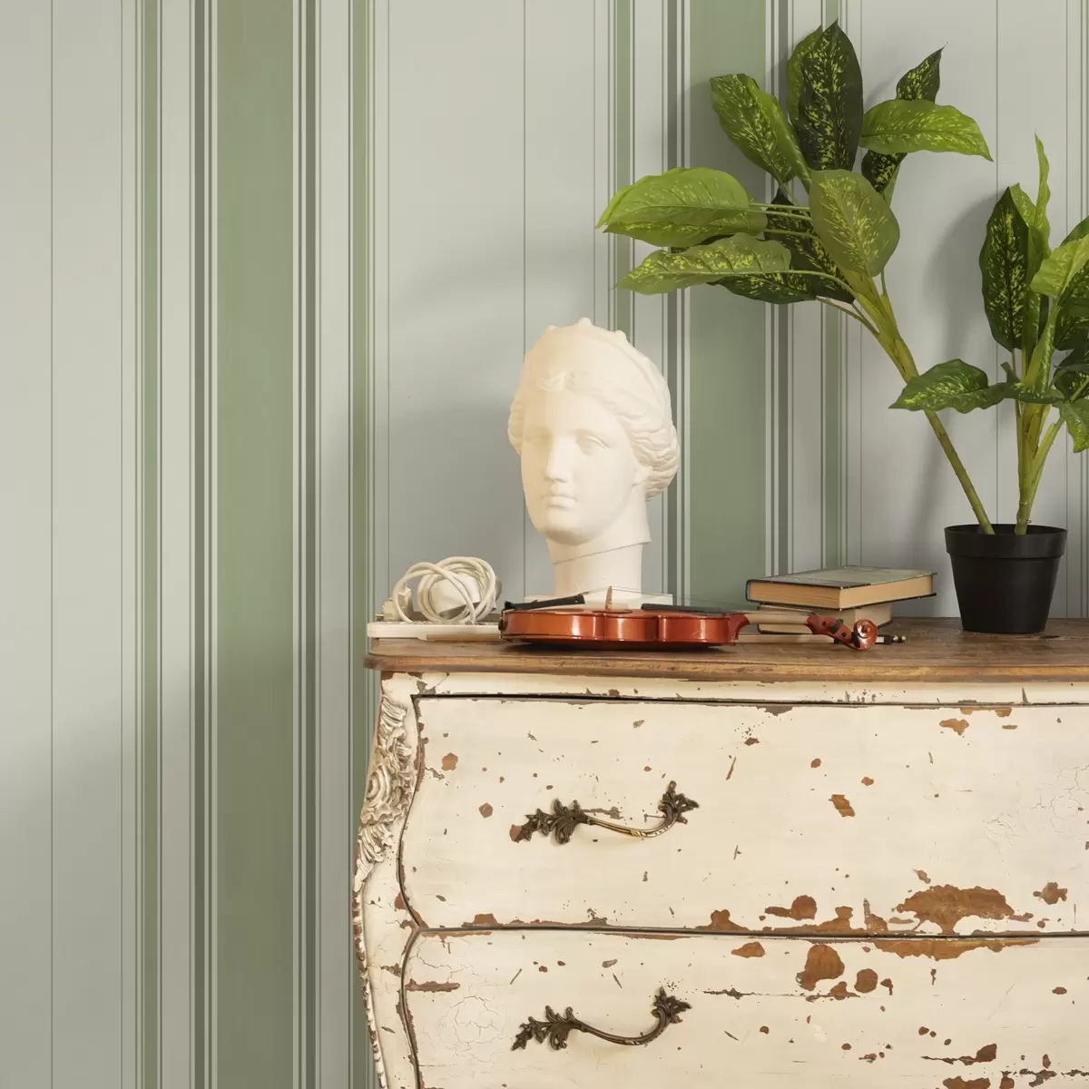 Tapet Kremfarget bakgrunn med en bred grønn midtstripe Nr. a00519