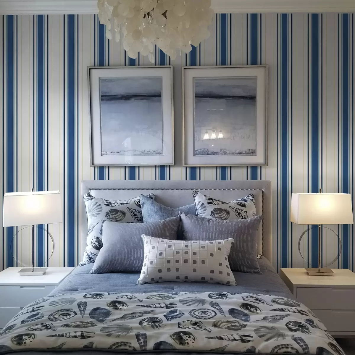 Tapet Brede blå striper med tynne gule linjer Nr. a00522