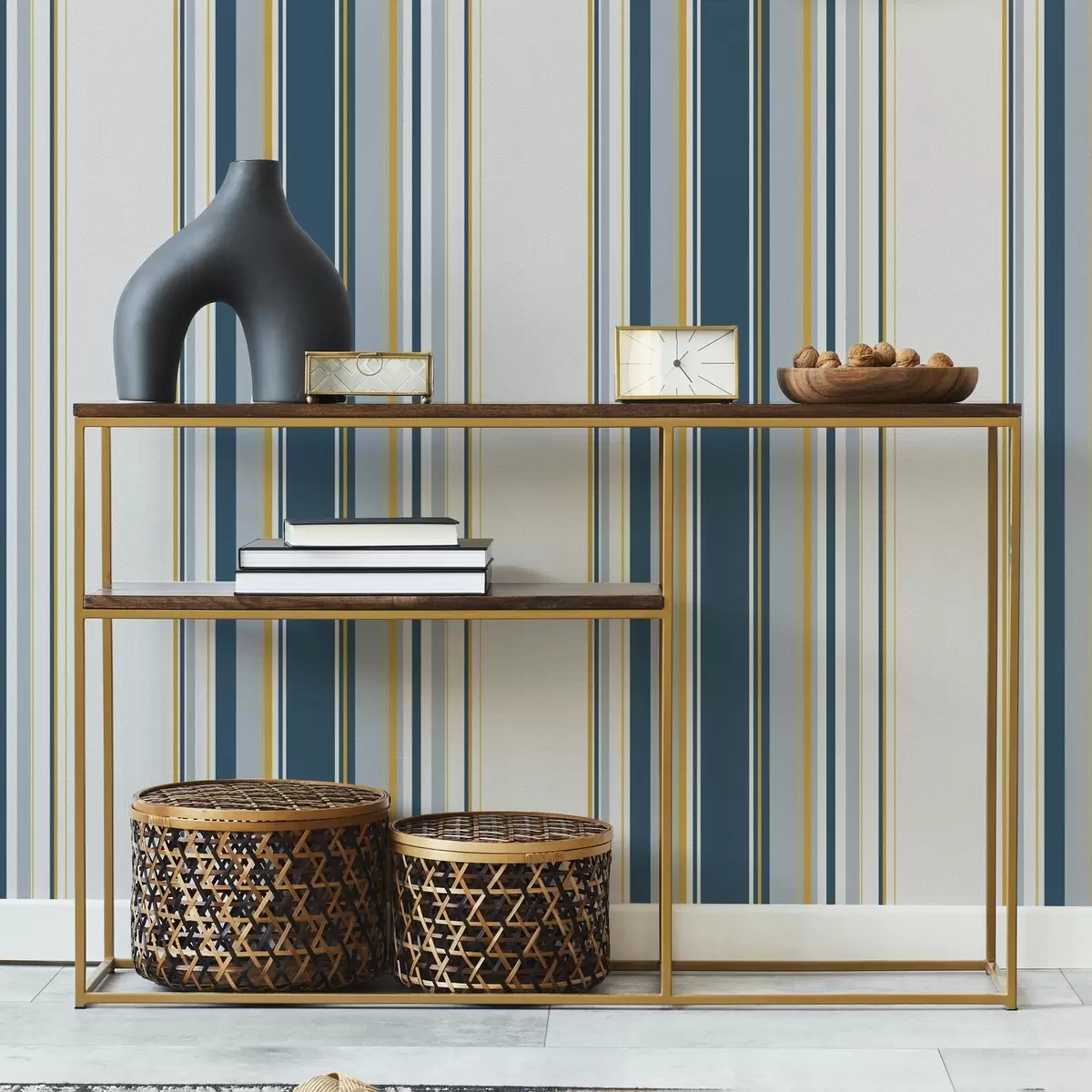 Tapet Tett mønster av blå og gule vertikale striper Nr. a00524