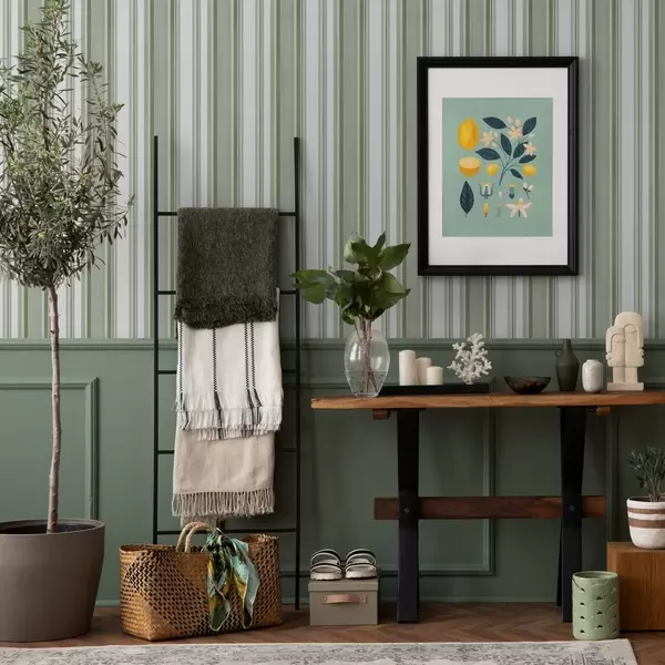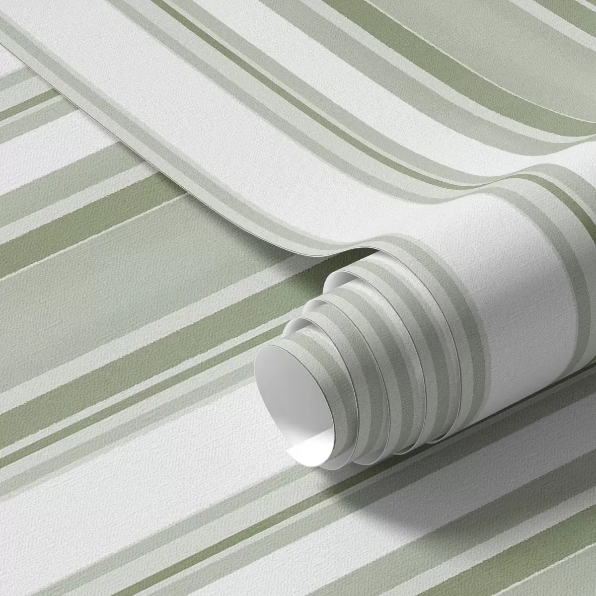 Tapet Grønne striper med hvite intervaller og tynne linjer Nr. a00526