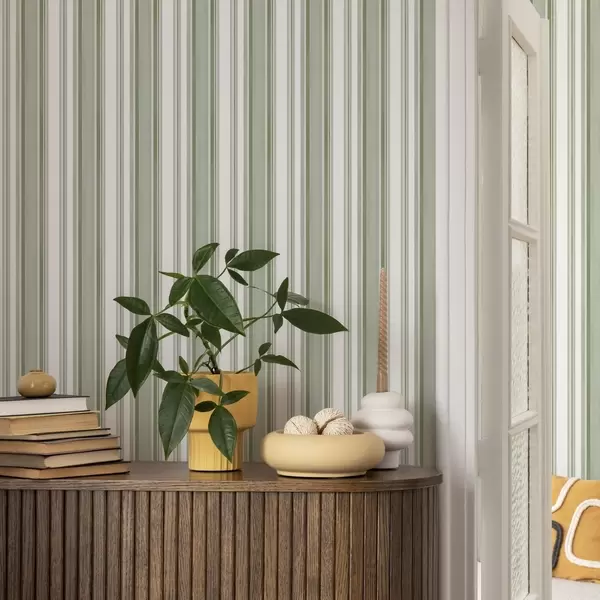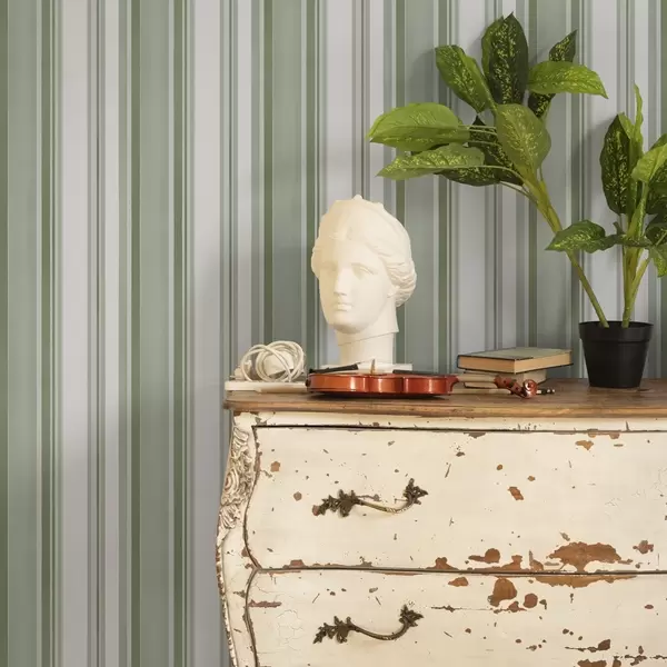 Tapet Grønne striper med hvite intervaller og tynne linjer Nr. a00526