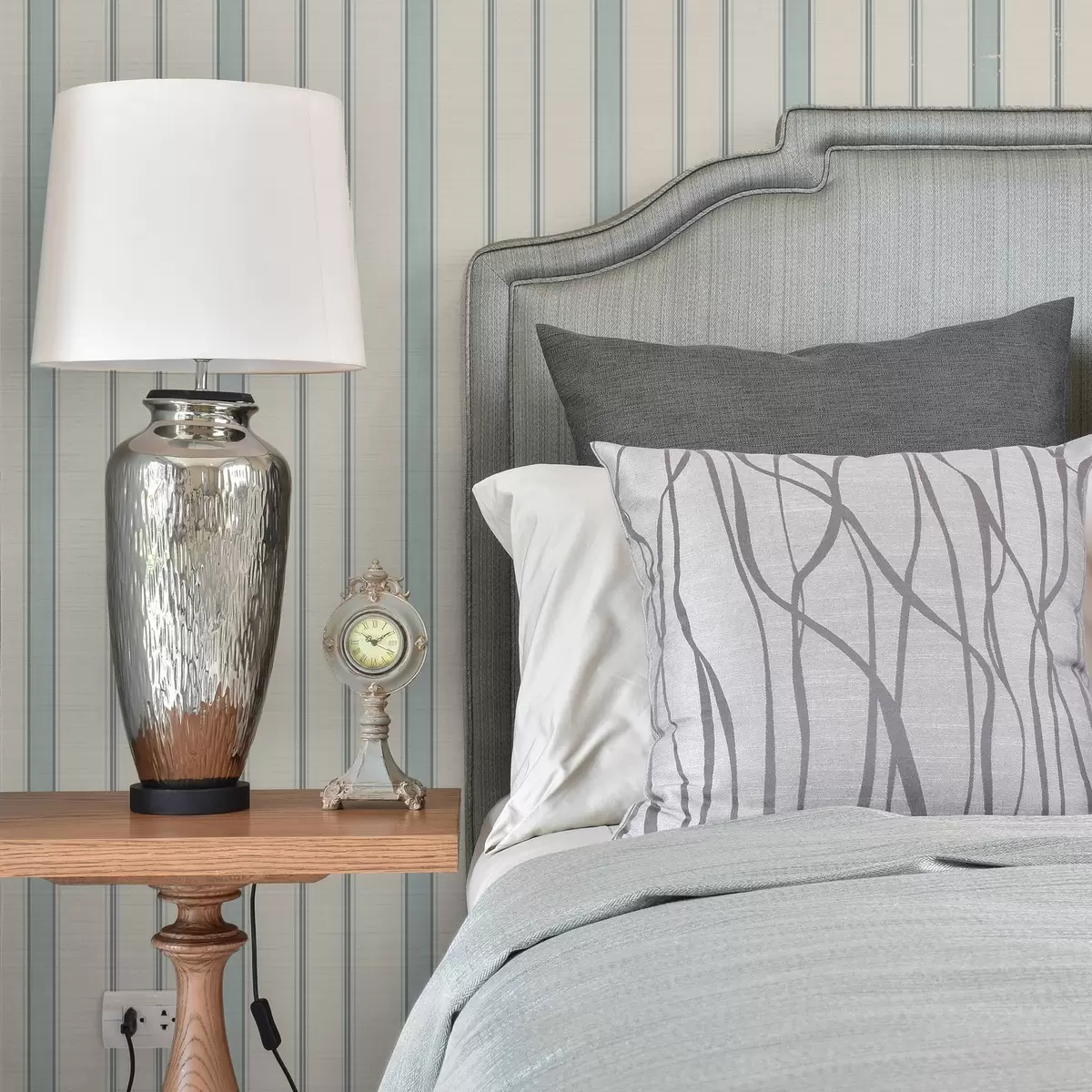 Tapet Blå og grå striper på kremfarget bakgrunn Nr. a00555