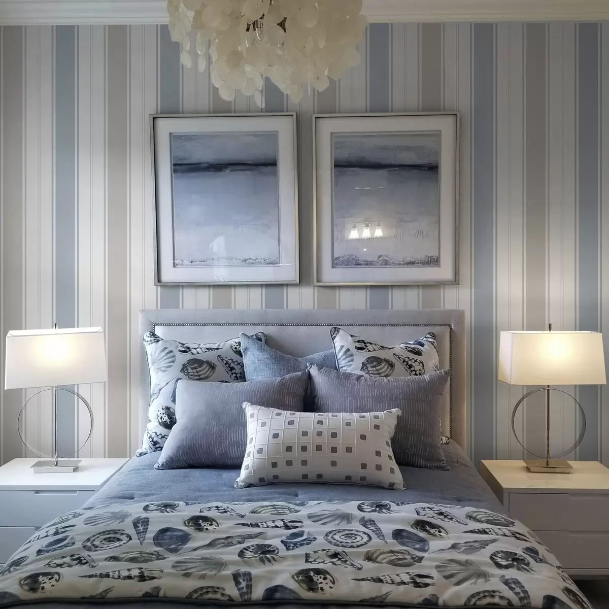 Tapet Grå og blå brede striper på hvit bakgrunn Nr. a00558