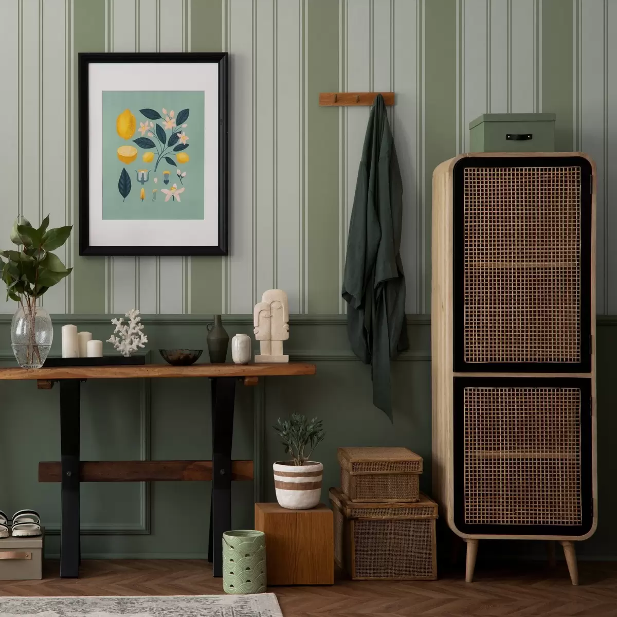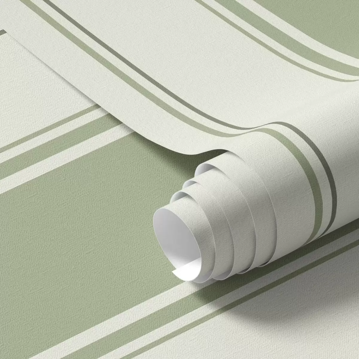 Tapet Kremfarget bakgrunn med brede lysegrønne striper Nr. a00561