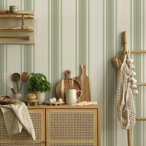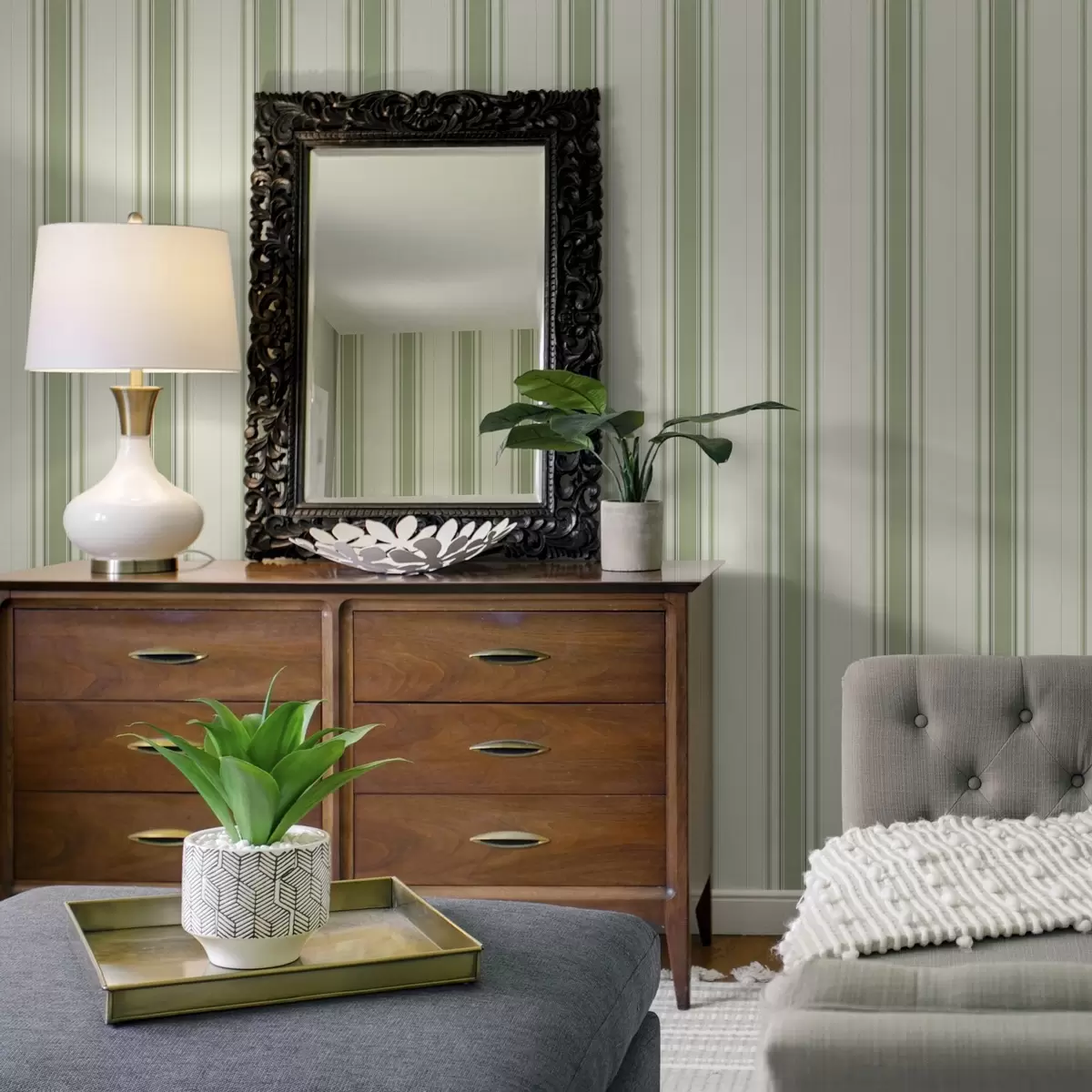 Tapet Lys bakgrunn med mørkegrønne aksentstriper Nr. a00562
