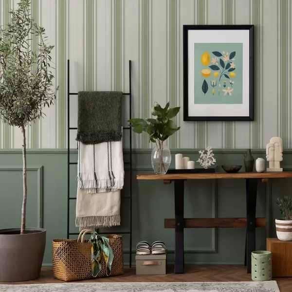 Tapet Lys bakgrunn med mørkegrønne aksentstriper Nr. a00562