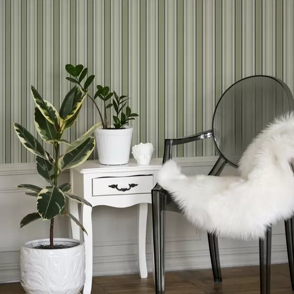 Tapet Kremfarget bakgrunn med en blanding av grønne og svarte striper Nr. a00563