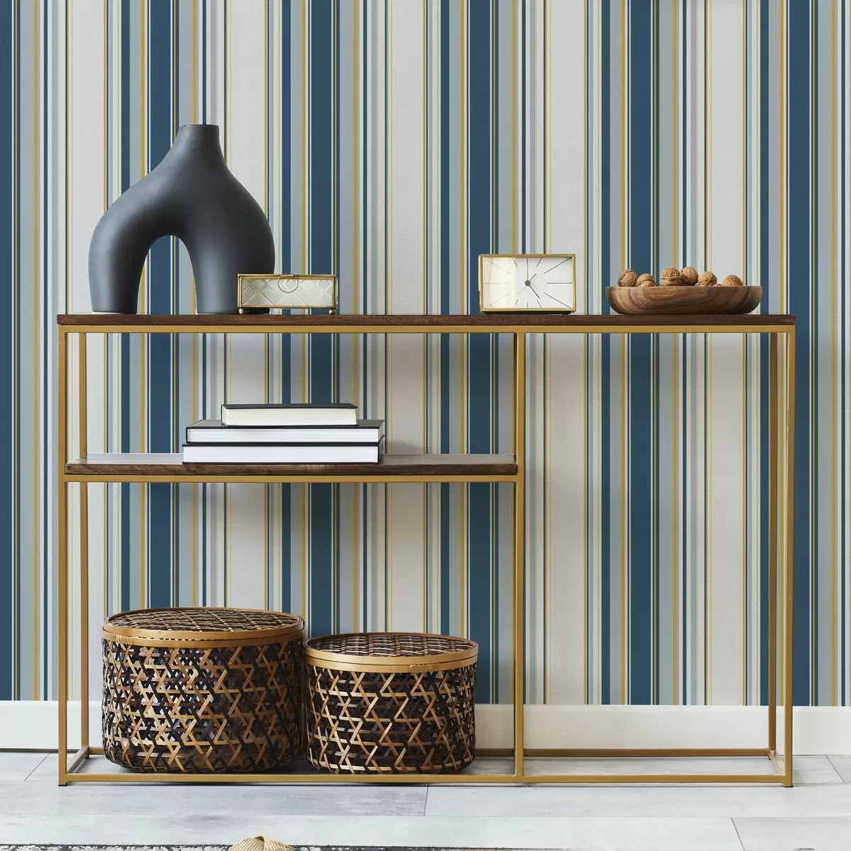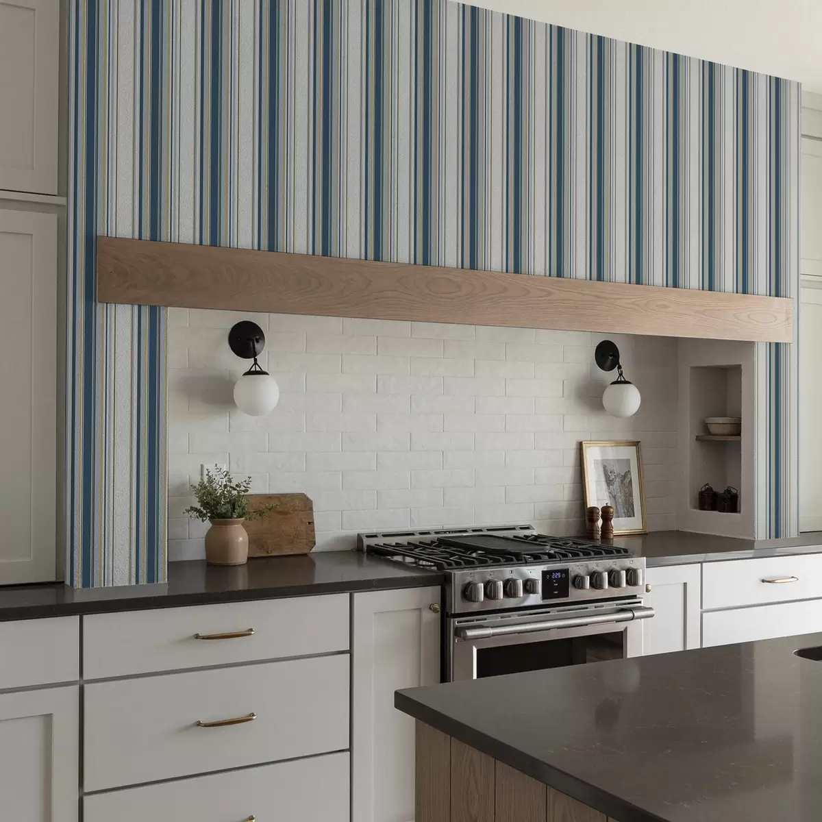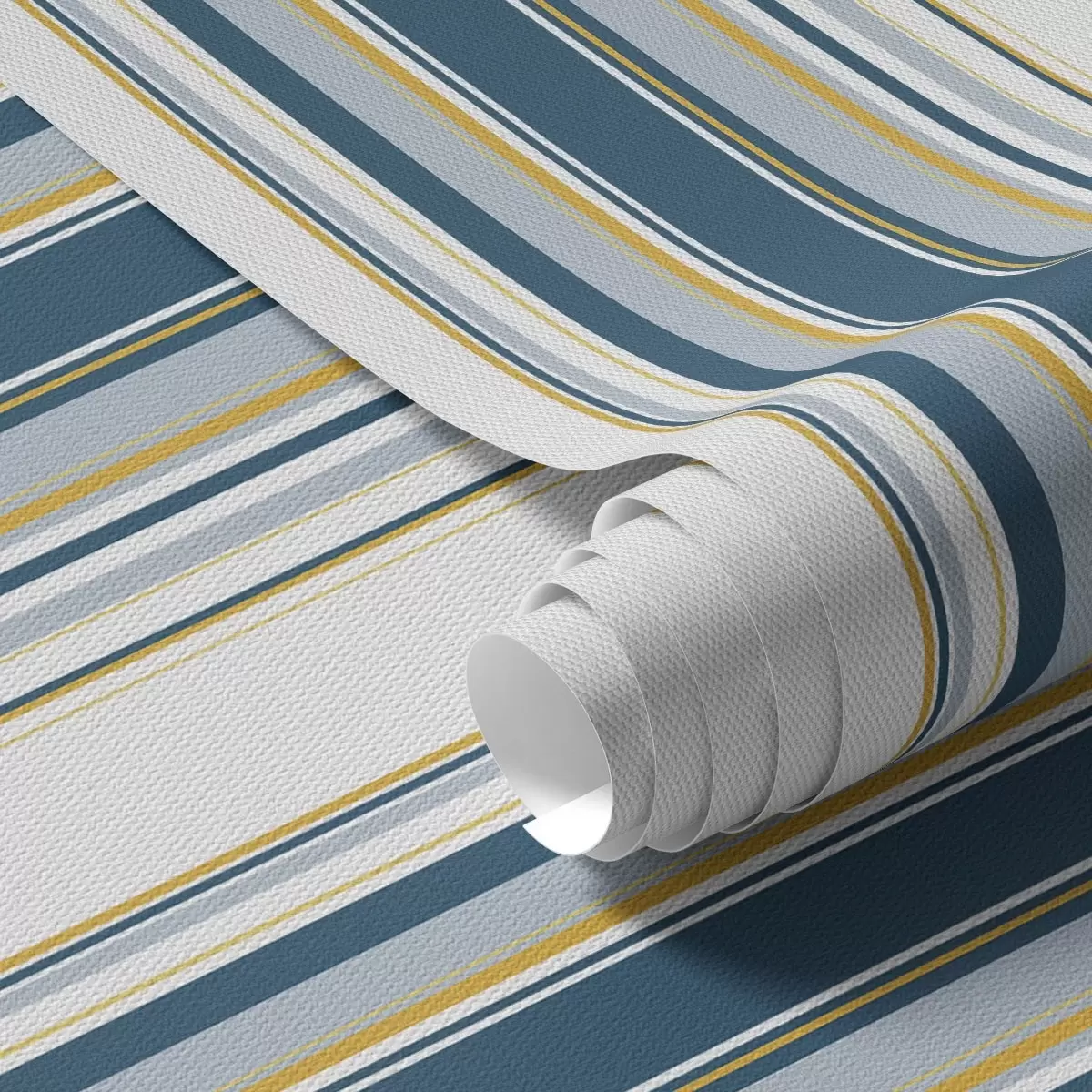 Tapet Kontrasterende blå og gule striper på hvit bakgrunn Nr. a00566