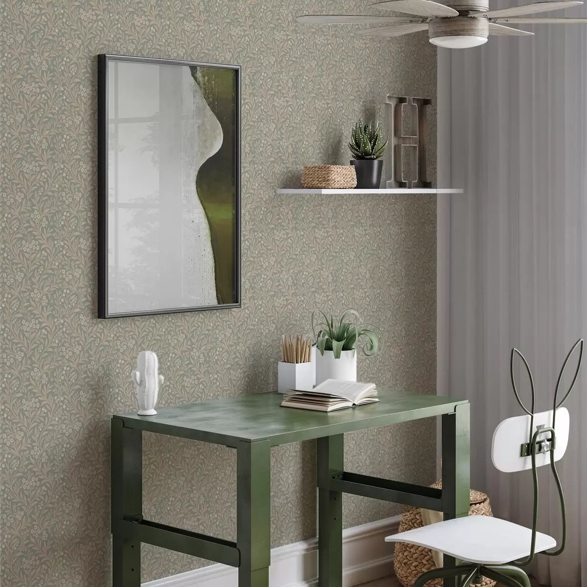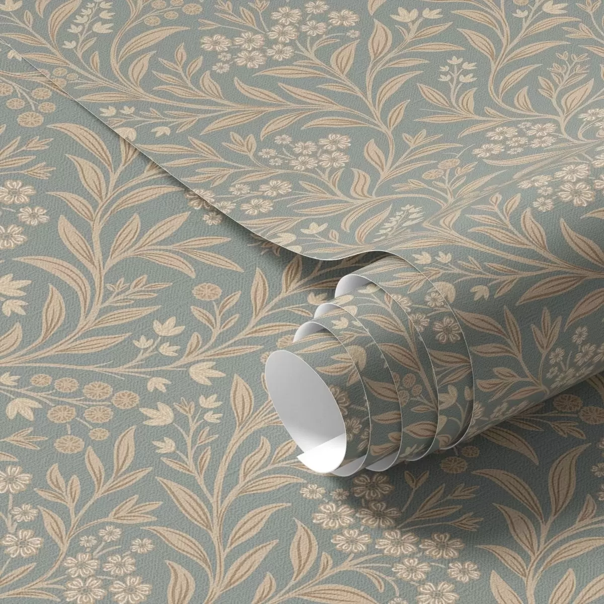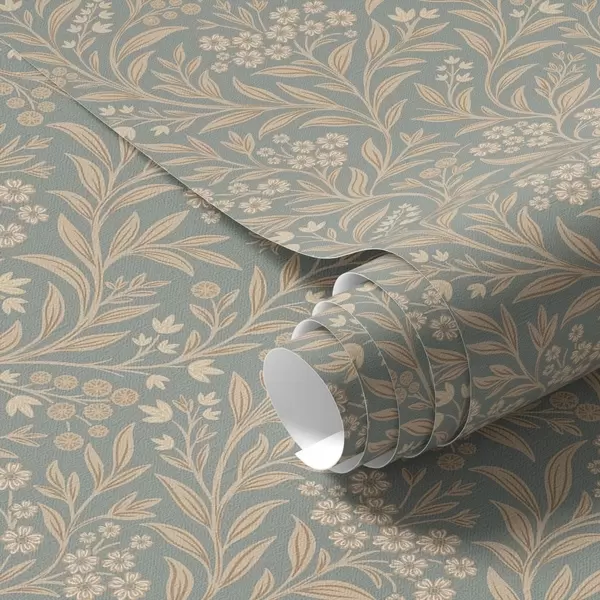 Tapet Morris-stil: beige grener på en grågrønn bakgrunn Nr. a00569