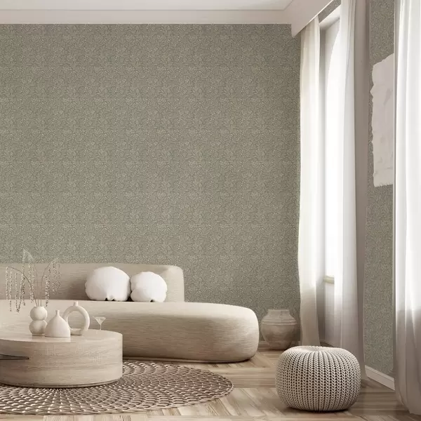 Tapet Morris-stil: beige grener på en grågrønn bakgrunn Nr. a00569