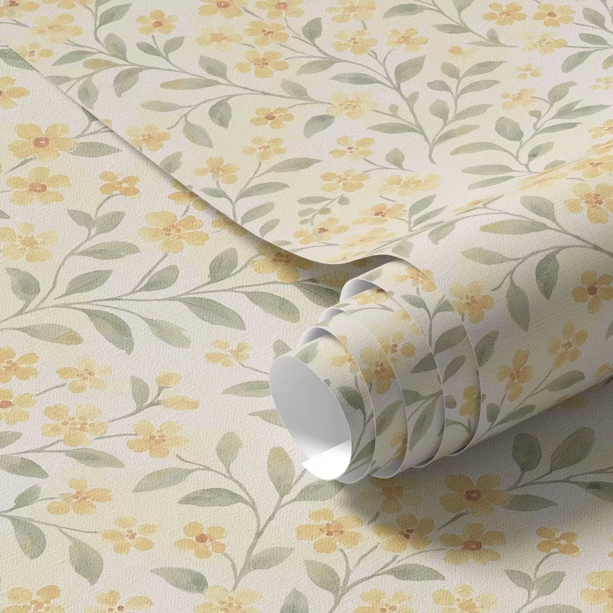 Tapet Akvarellgule blomster på lys bakgrunn Nr. a00570