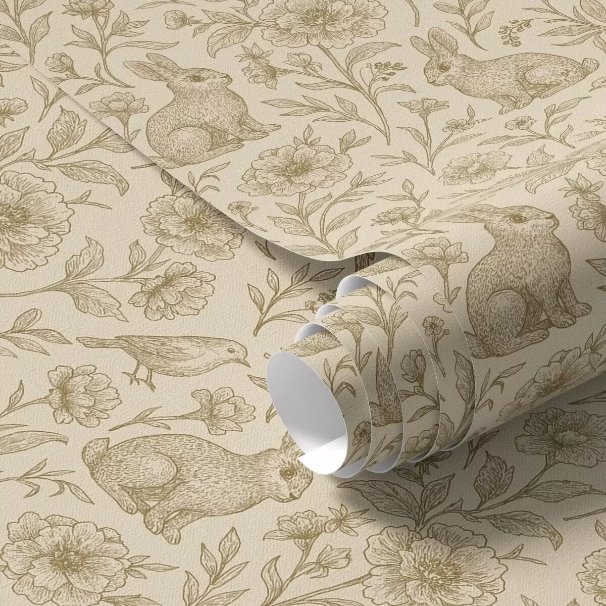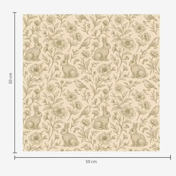Tapet Kaniner og fugler i blomstermønster Nr. a00571