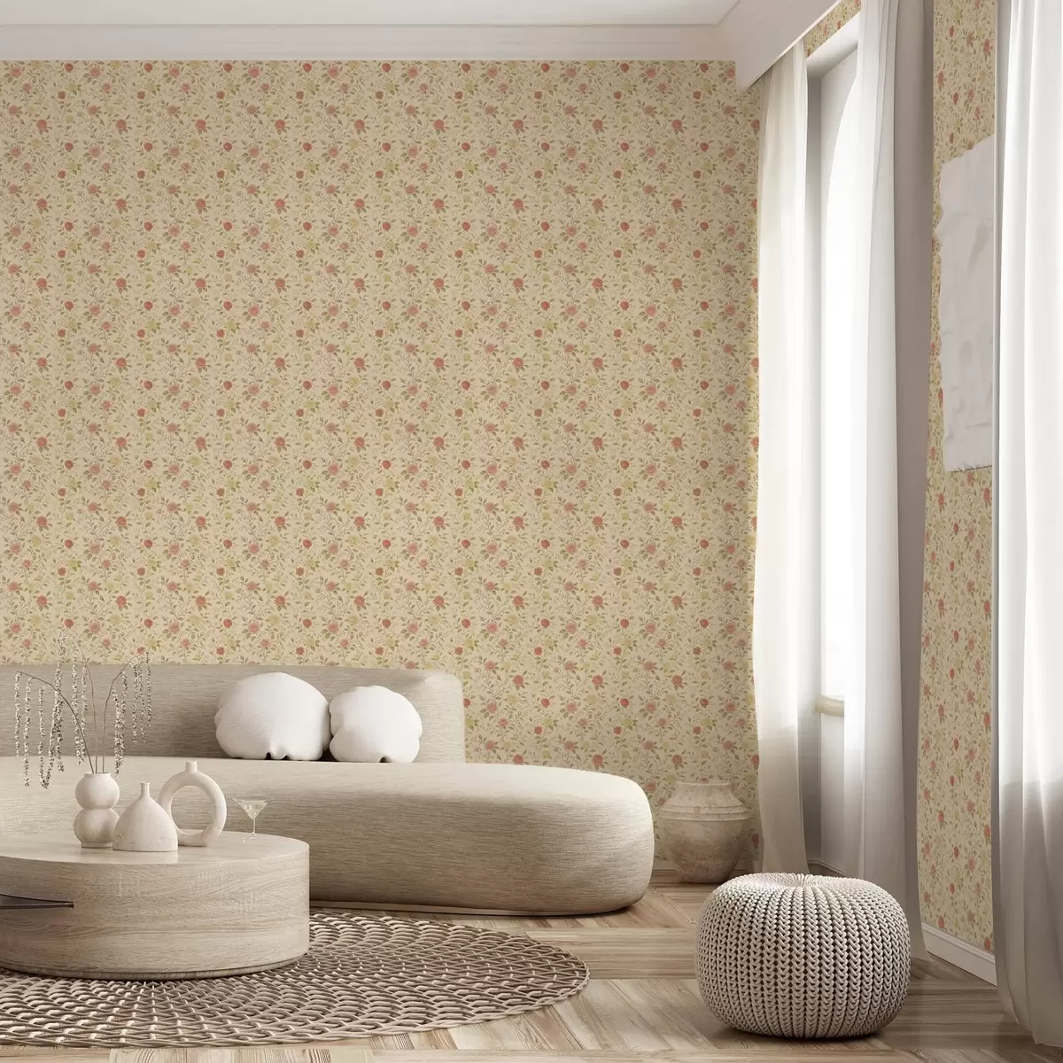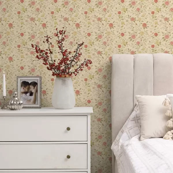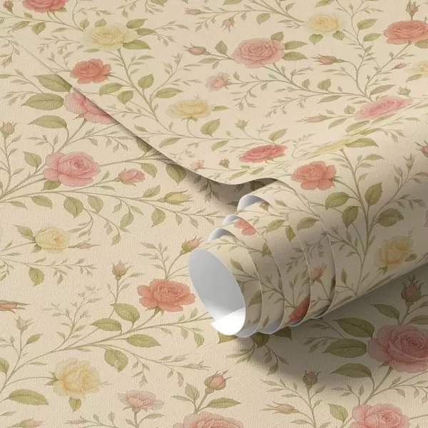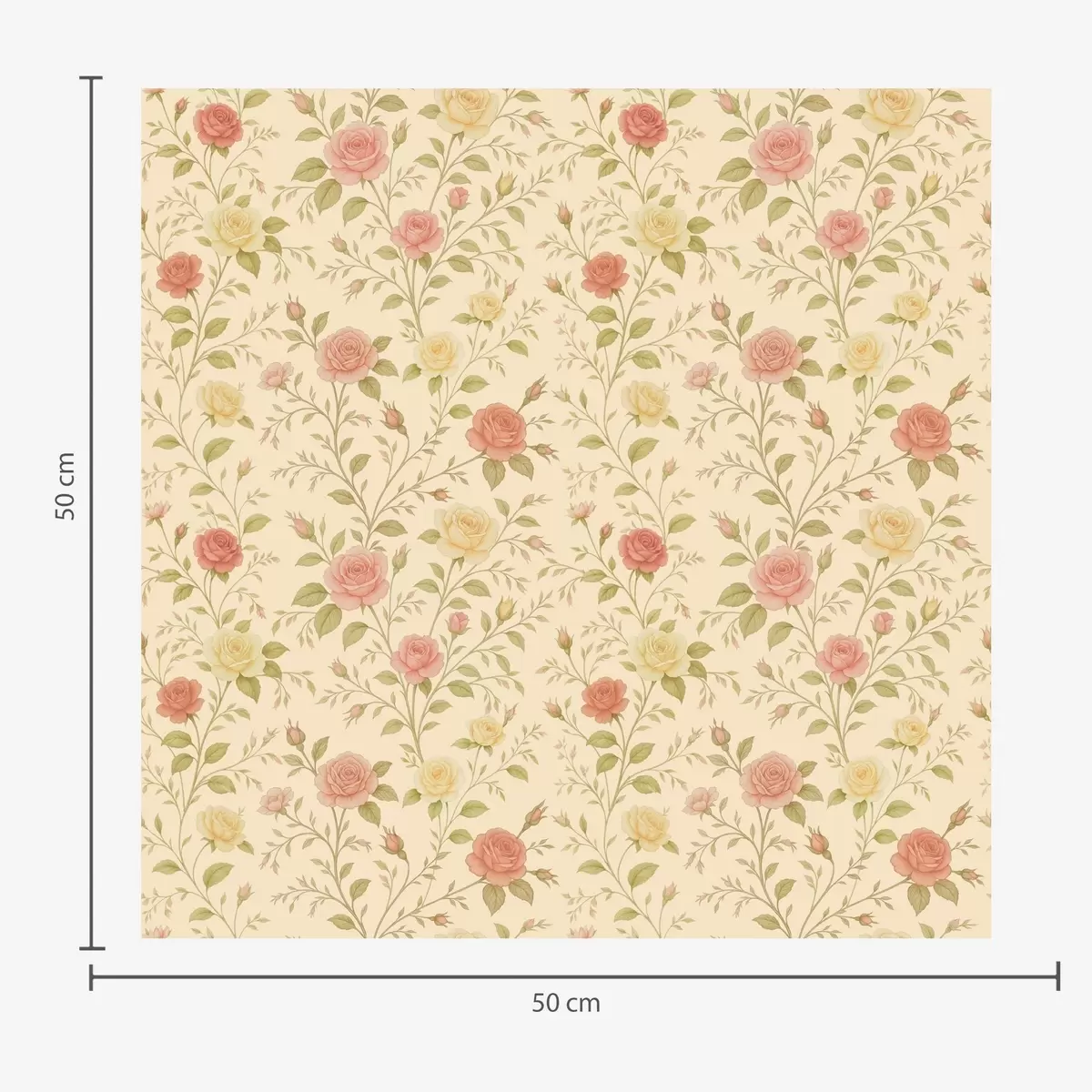 Tapet Vintage roser i fersken og gult på kremfarget bakgrunn Nr. a00577