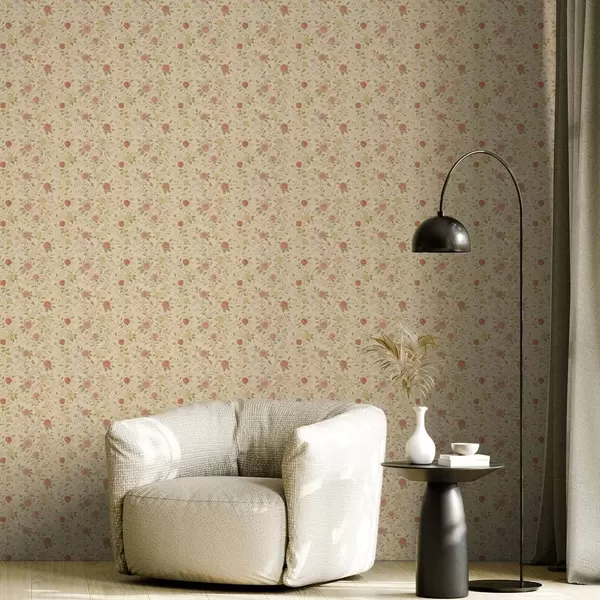 Tapet Vintage roser i fersken og gult på kremfarget bakgrunn Nr. a00577