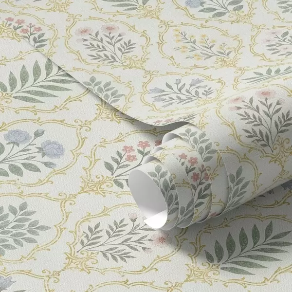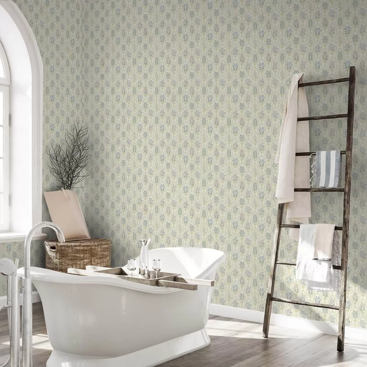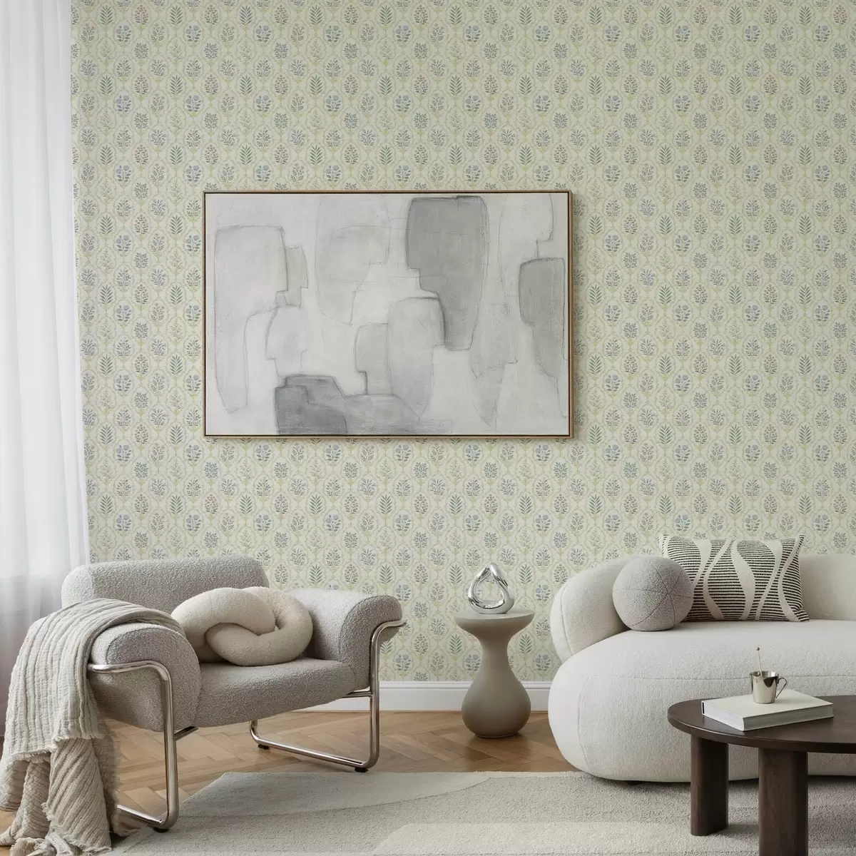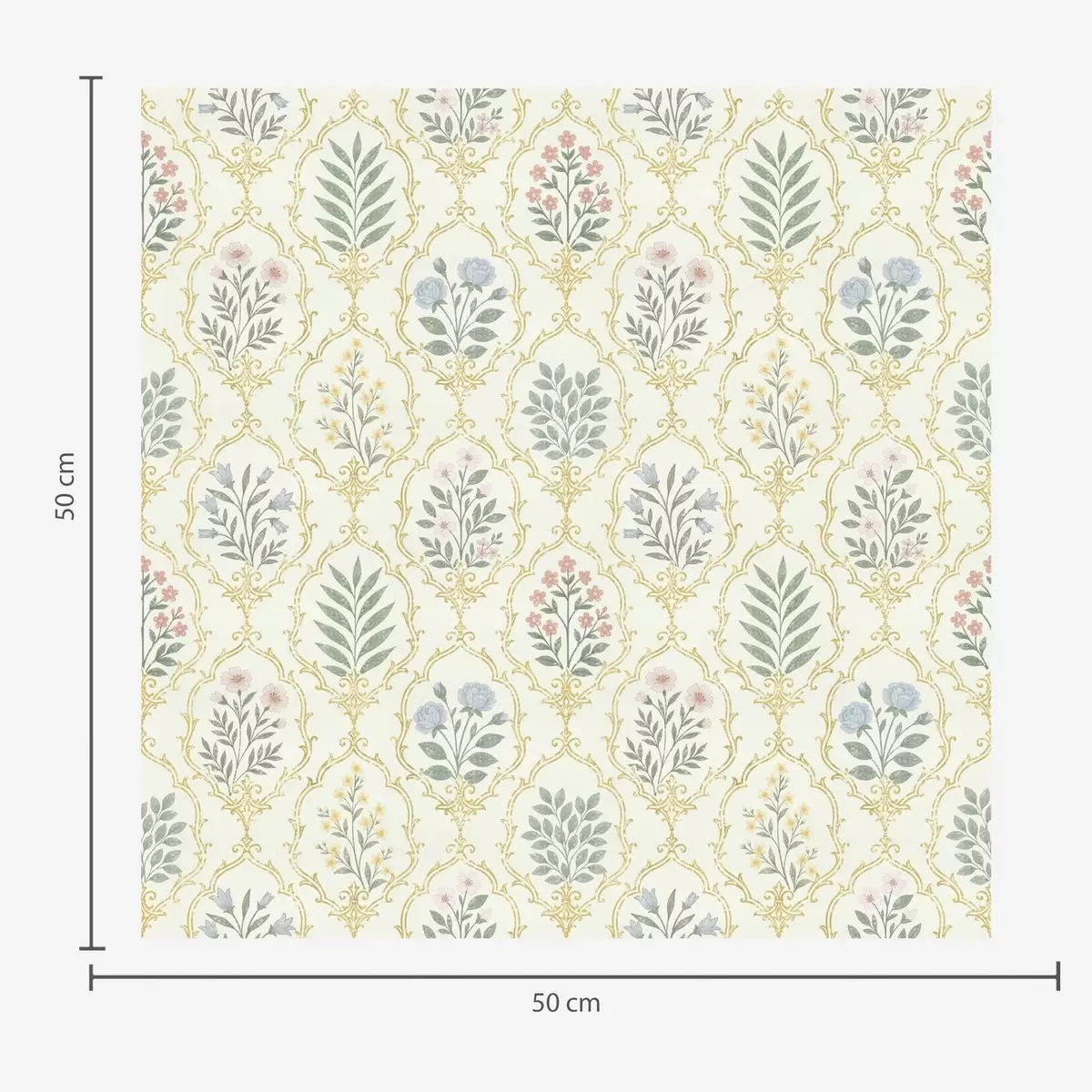 Tapet Botaniske medaljonger i et gitter, pastellfarger Nr. a00579
