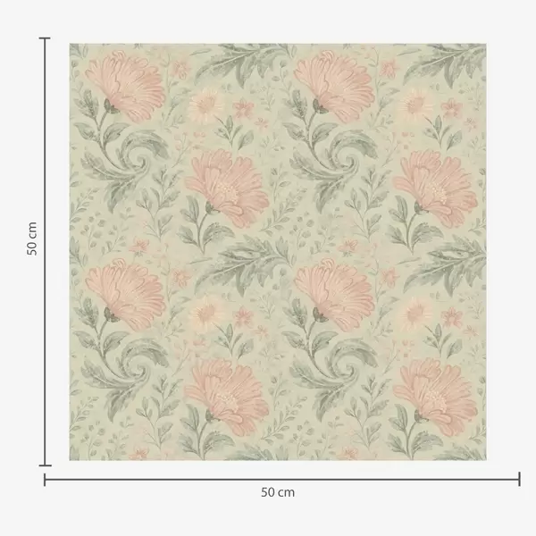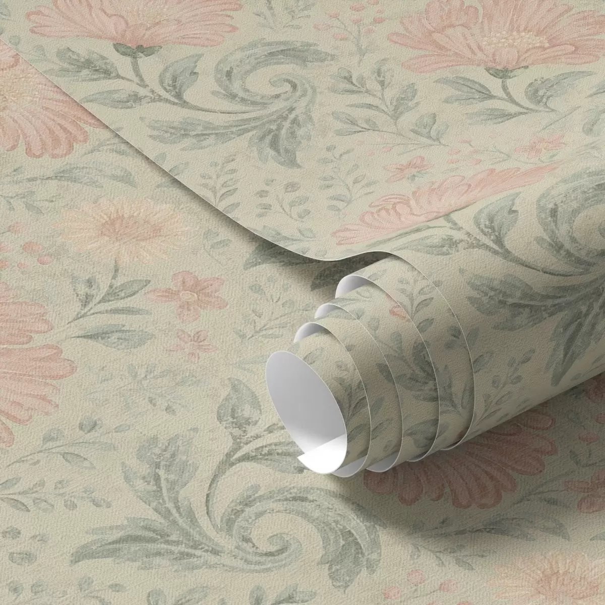 Tapet Vintage store ferskenblomster med salvieblader Nr. a00580