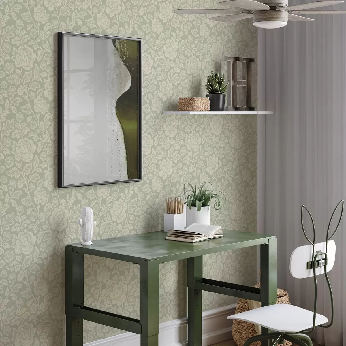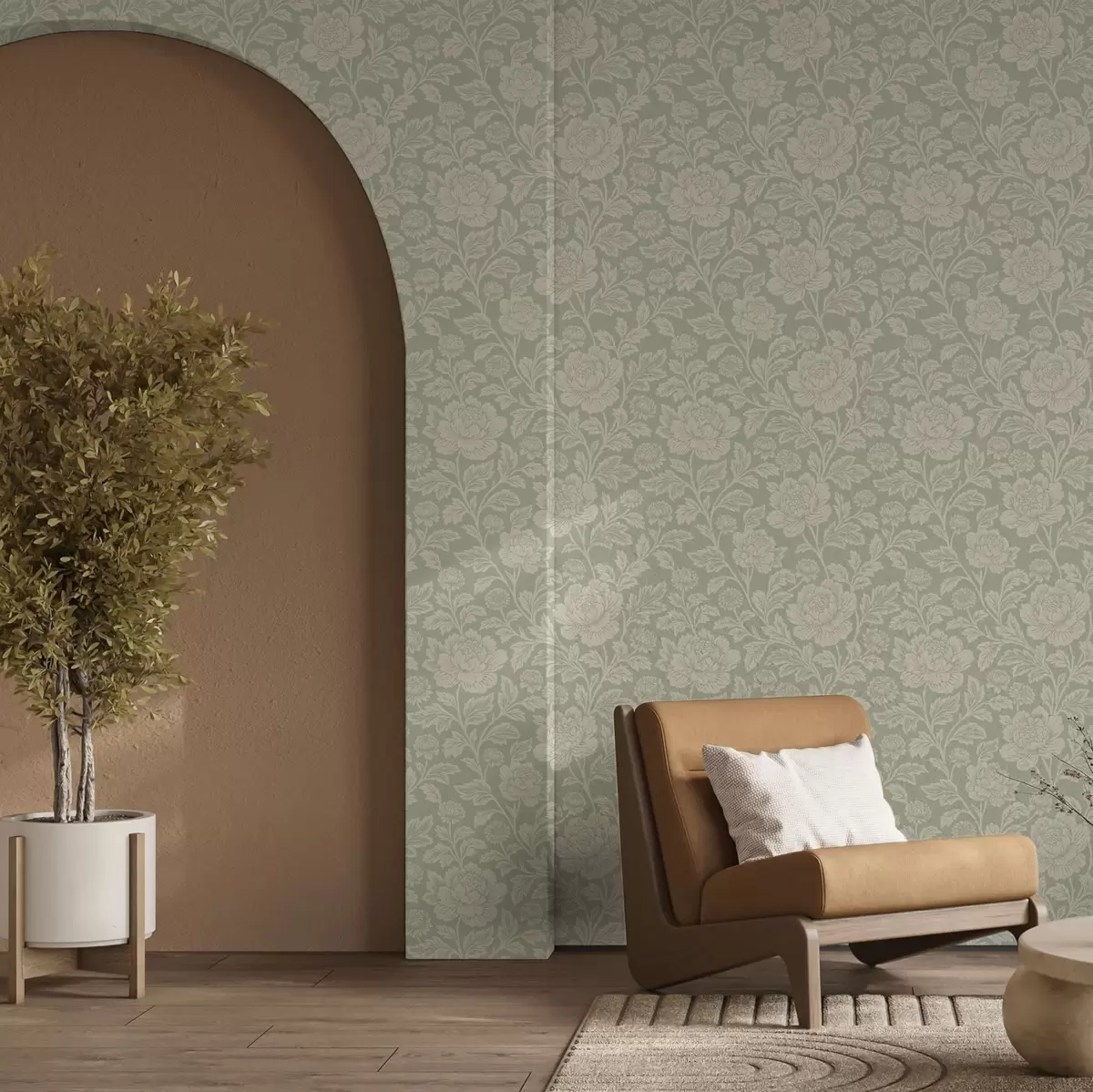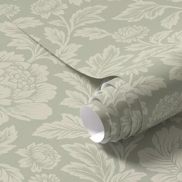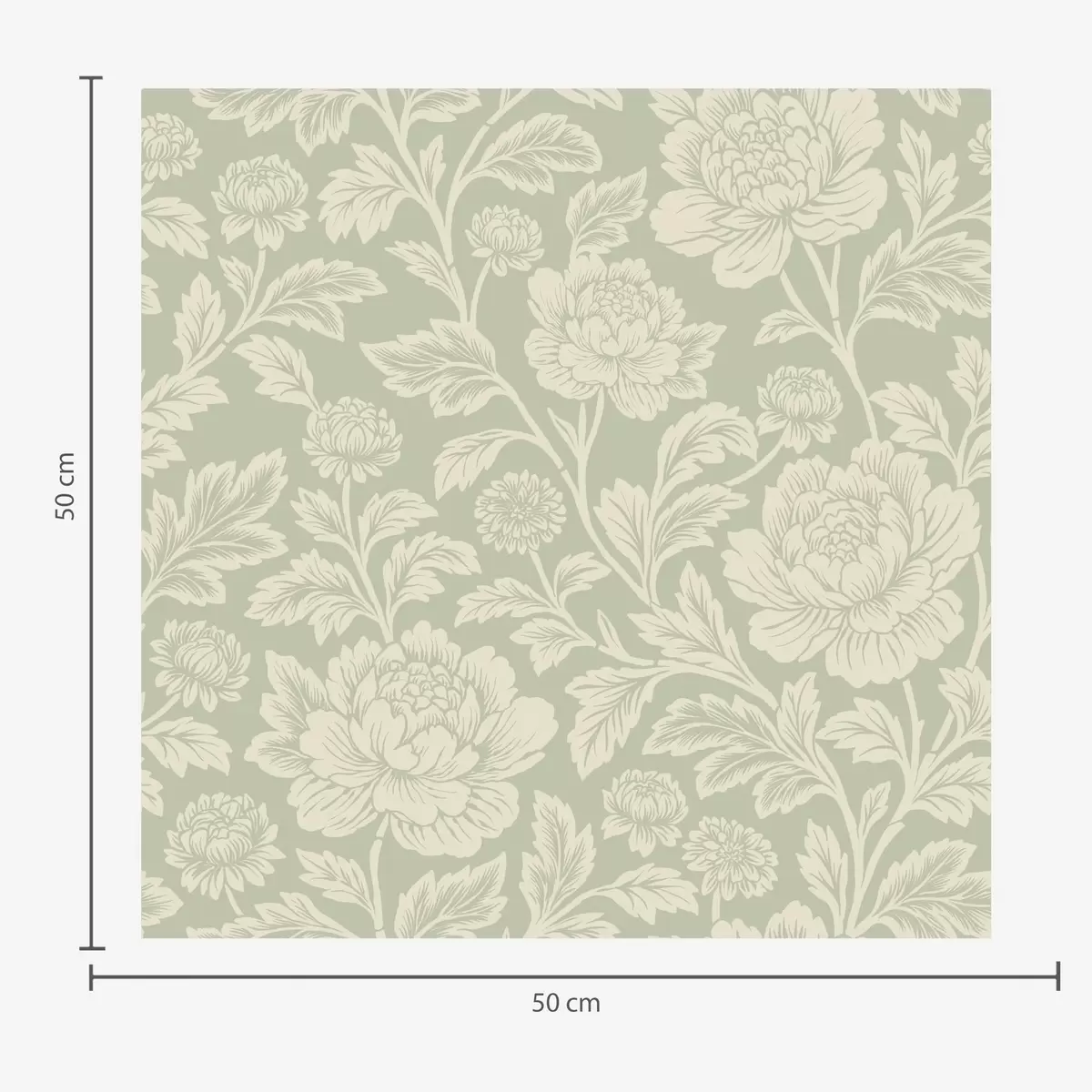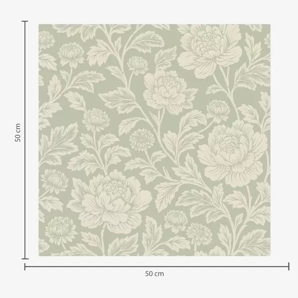 Tapet Store strektegnede pioner på salviegrønn bakgrunn Nr. a00582
