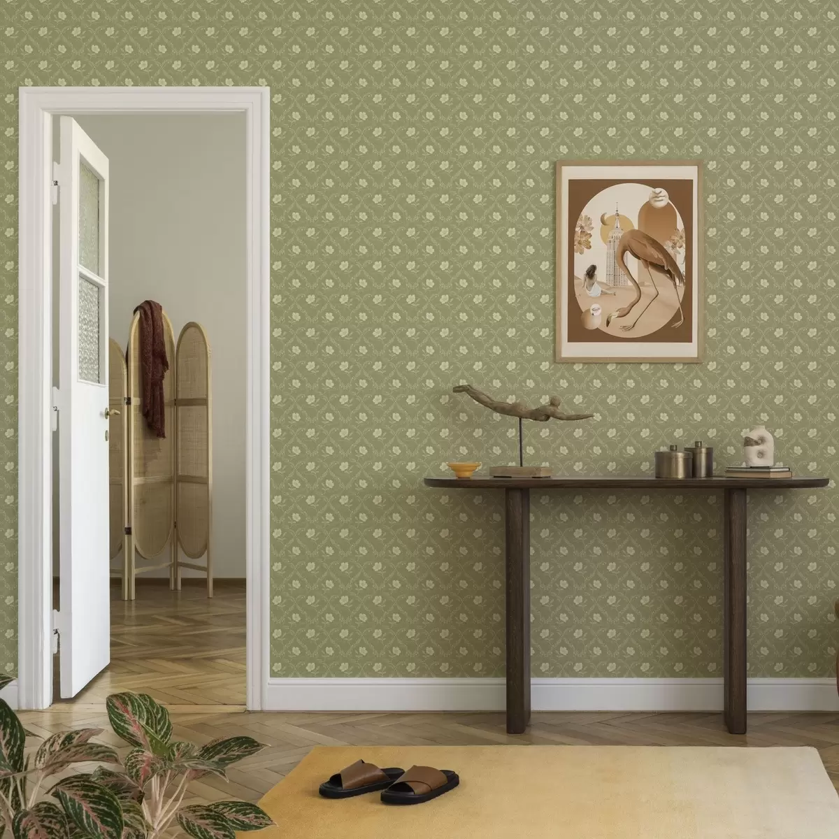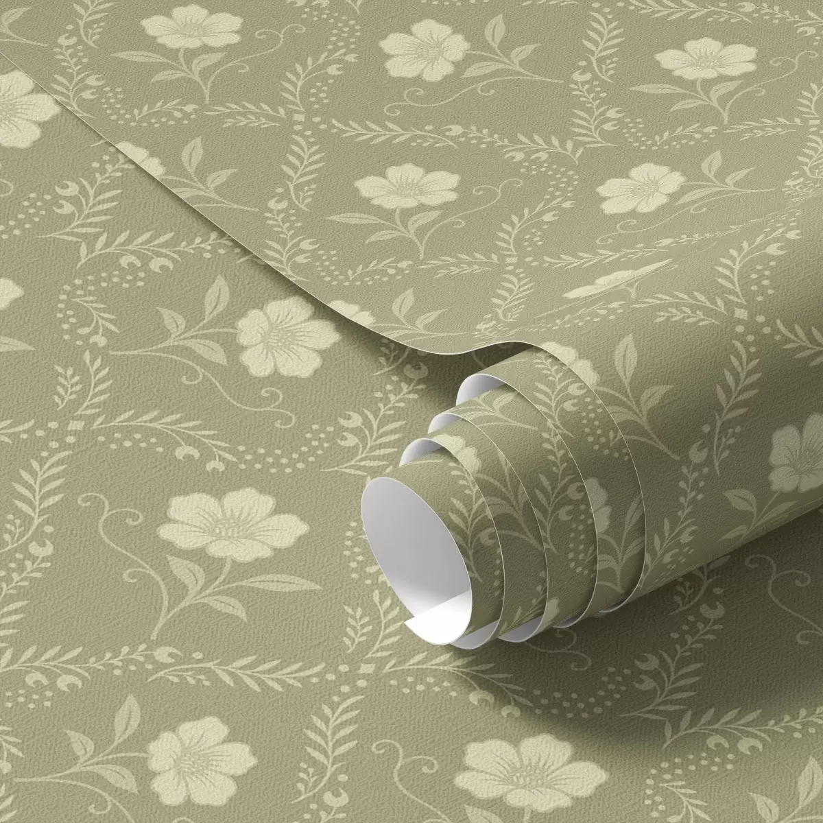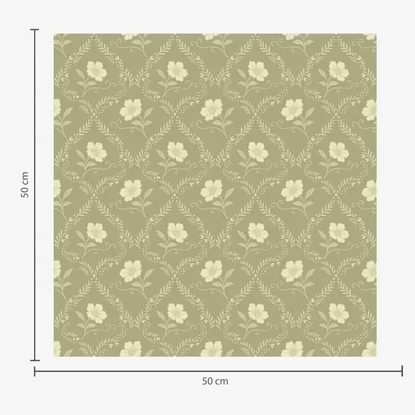 Tapet Oliven trellis med kremfargede blomster, retro ornament Nr. a00585