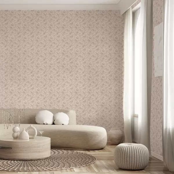 Tapet Fugler og roser, vintage mønster på pudderrosa Nr. a00587