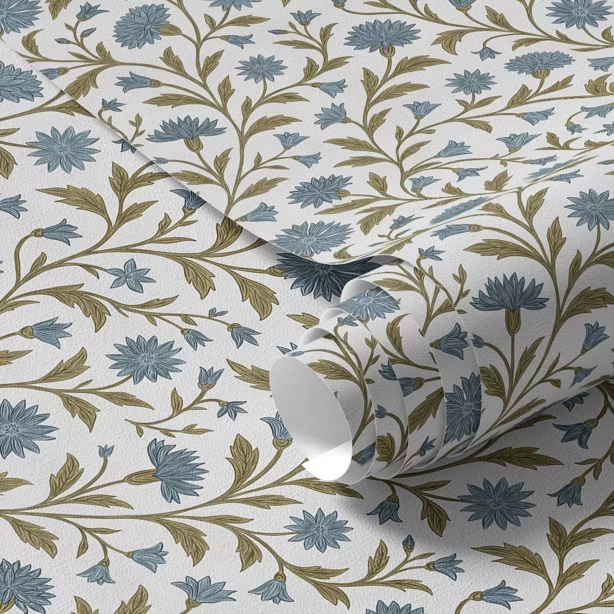 Tapet Kornblomster og skudd på hvit bakgrunn Nr. a00588v1