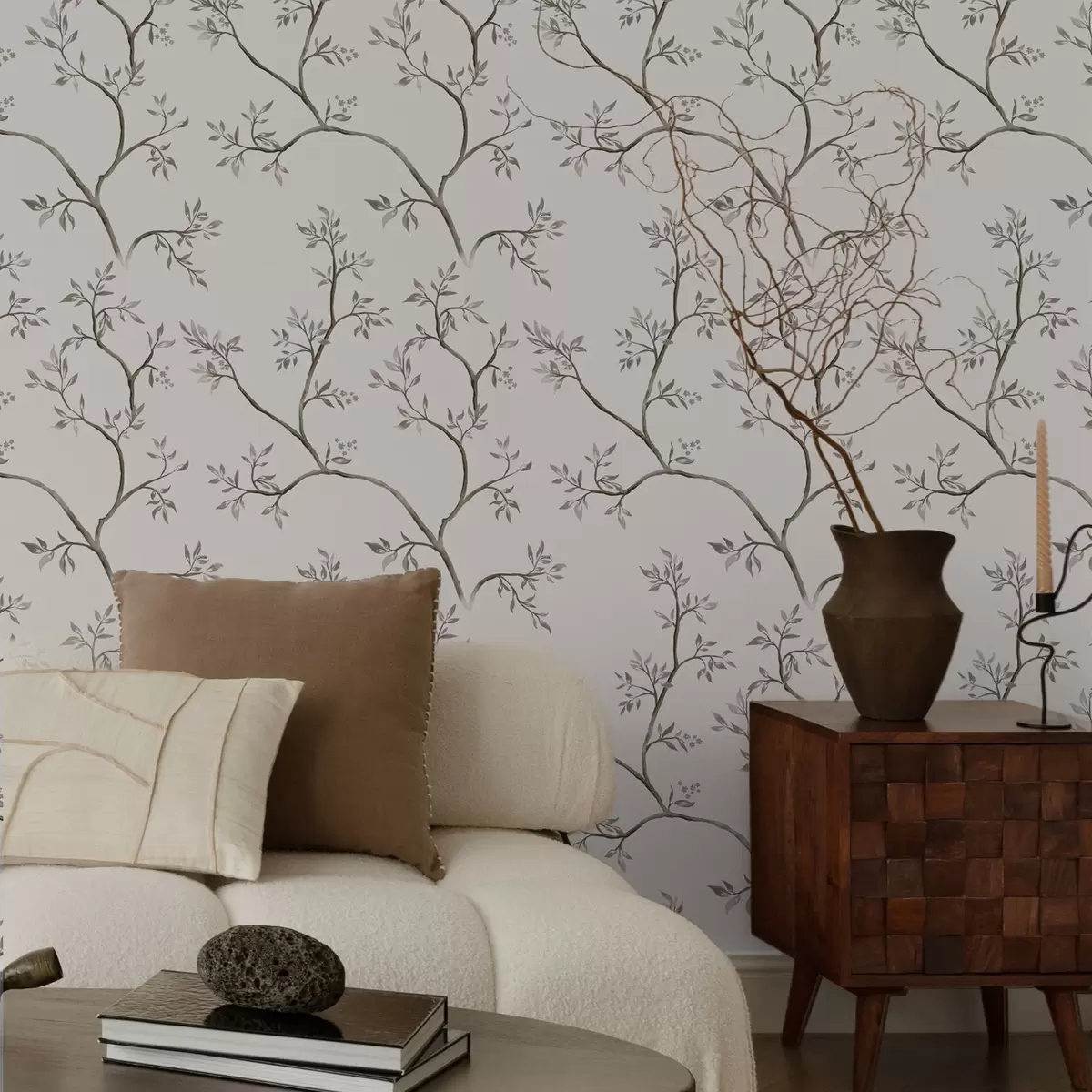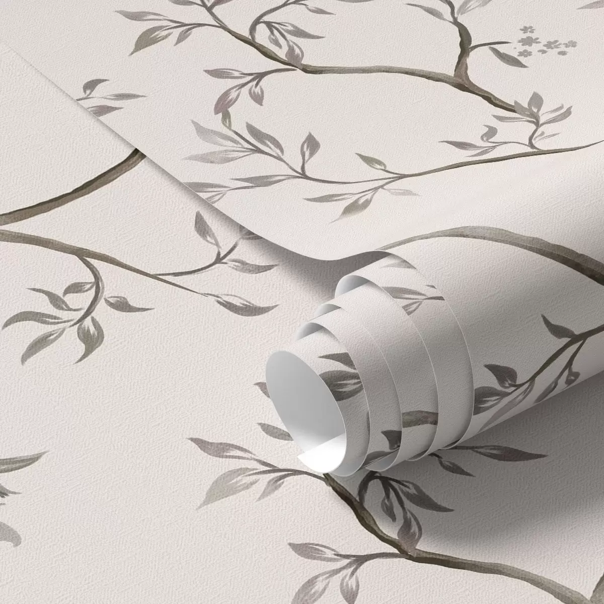 Tapet Delikate bladrike grener på en varm kremfarget bakgrunn Nr. a00597v1