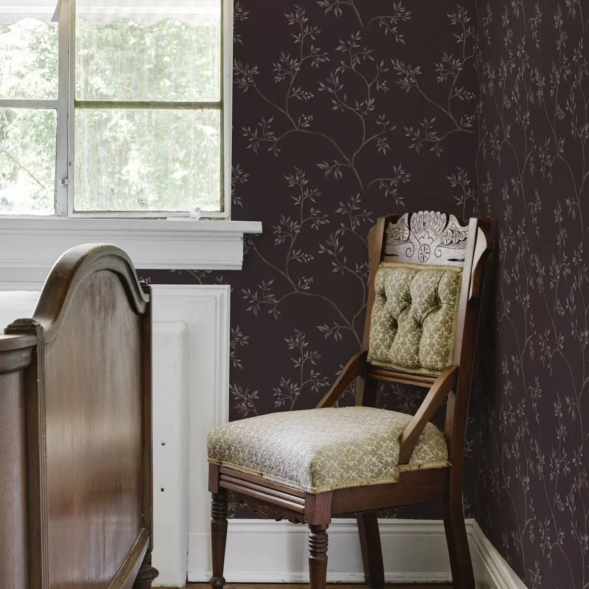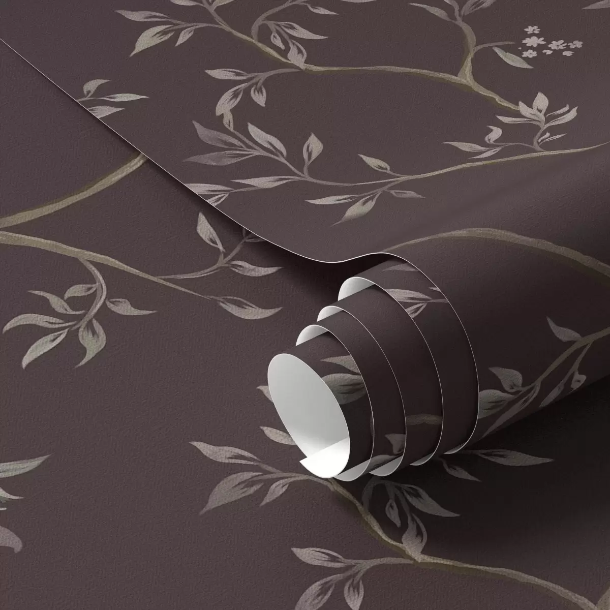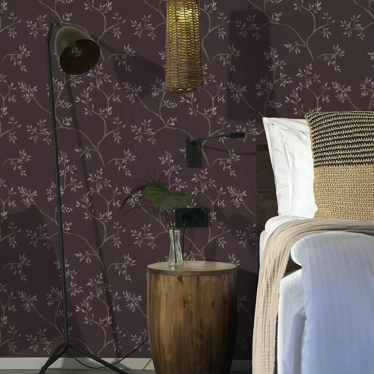 Tapet Delikate bladrike grener på en rik plommefarget bakgrunn Nr. a00597v2